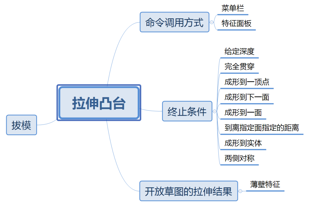 ●课前预习:利用云班课平台发布学习任务,引导学生绘制思维导图(以拉伸凸台命令为例)。并通过简单的课前测试检测学生预习效果,通过课前测试结果,总结学生预习中存在的问题,定位学习难点。