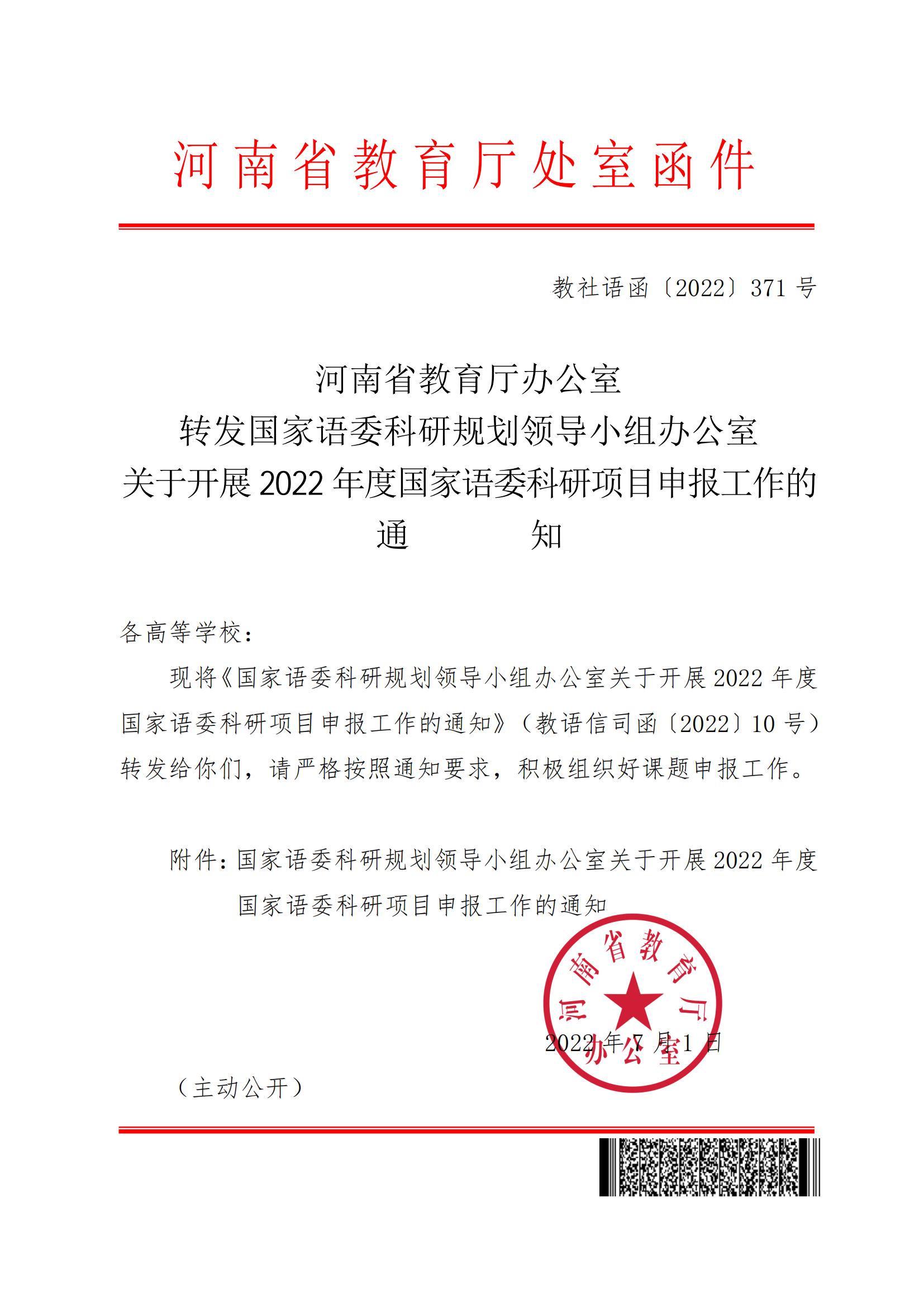 河南省教育厅办公室转发国家语委科研规划领导小组办公室关于开展2022年度国家语委科研项目申报工作的通知