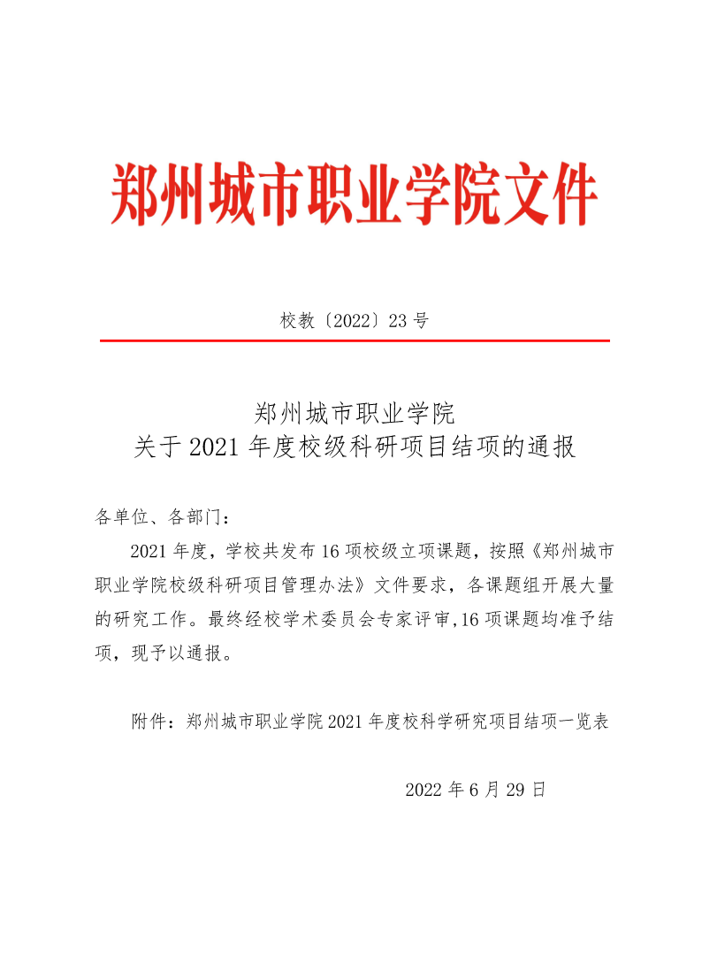 校教〔2022〕23号 关于2021年度校级科研项目结项的通报