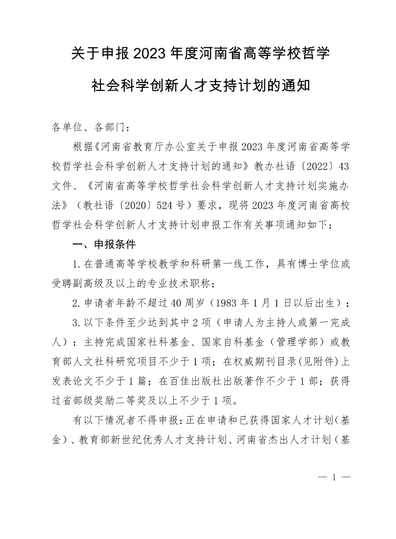 关于申报2023年度河南省高等学校哲学社会科学创新人才支持计划的通知