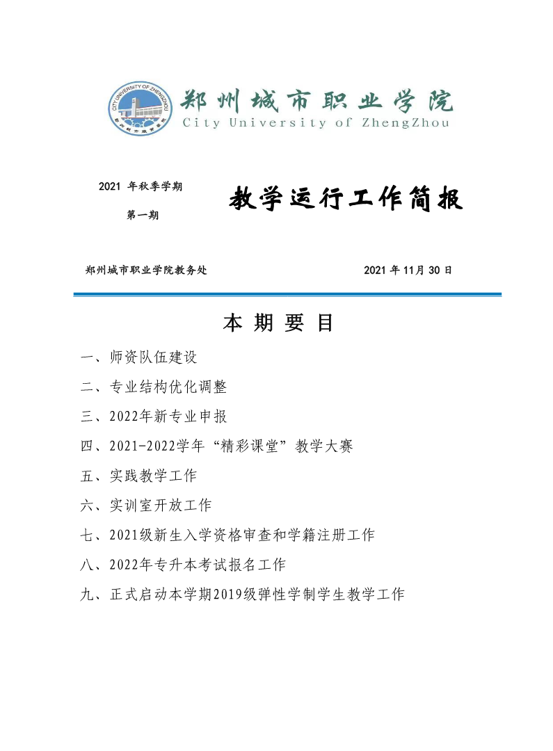 郑州城市职业学院教学运行简报(2021秋季学期第1期)