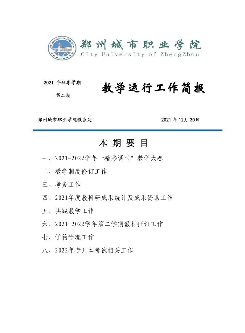 郑州城市职业学院教学运行简报(2021秋季学期第2期)