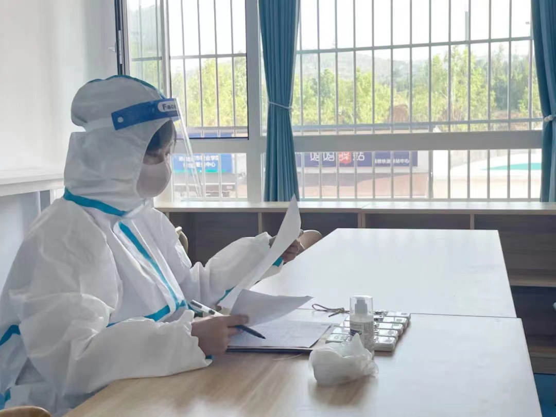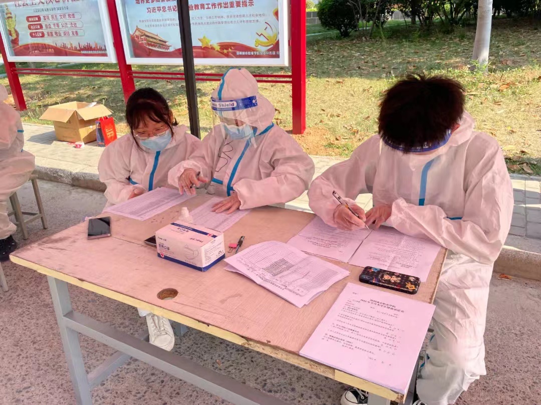 校门右侧的明理路上,二级学院报到站里站着一位位急切等待莘莘学子归来的辅导员老师们,他们身穿密不透风医疗防护服,戴着口罩面罩,不停查阅返校名单,不时翻看手机信息,精准掌握着每一位学生的返校情况。学生来报到时,他们认真收取查看学生的体温健康监测表及返校承诺书,并亲切地与每一位返校学子交流,“好久不见,老师”“好久不见,欢迎回校”,彼此间的那份久违的默契和熟悉在简单的问候声中油然而生。