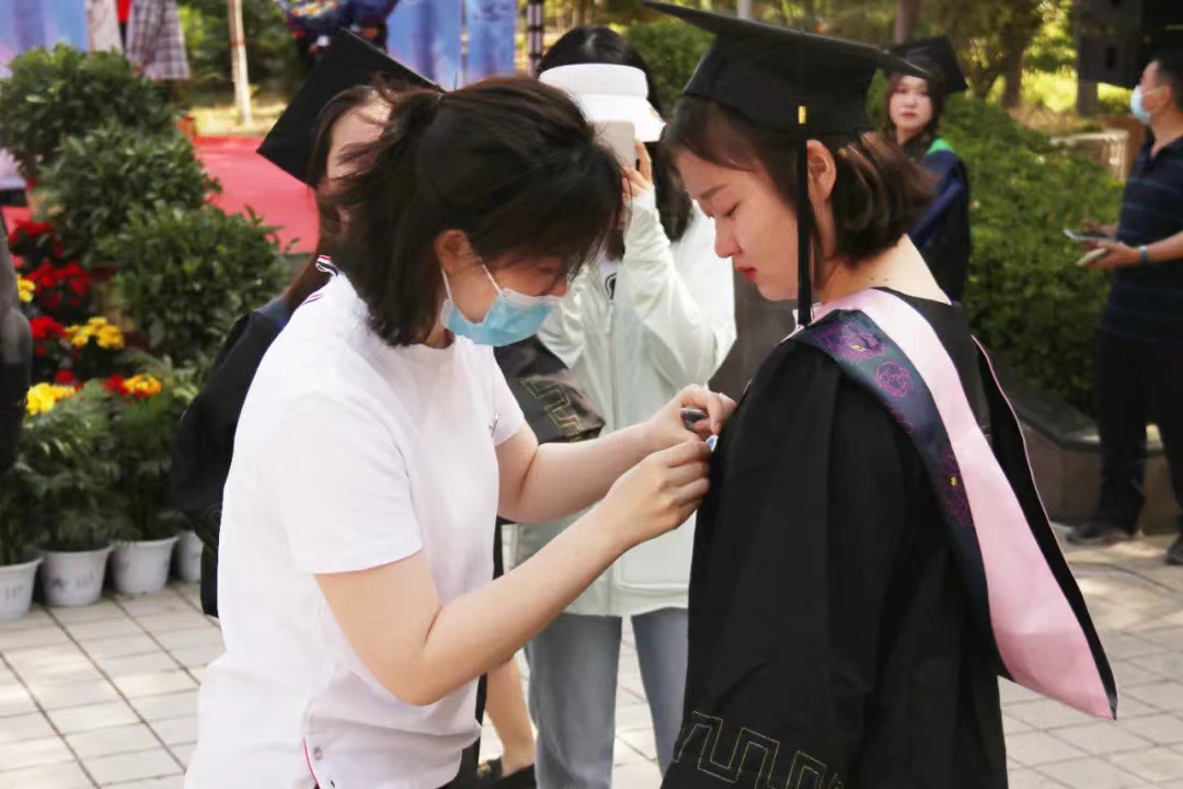 典礼仪式上,城院学子感恩三年来老师的一路陪伴、鼓舞和激励,老师为即将走出校门的学生赠送纪念品并佩戴校徽。