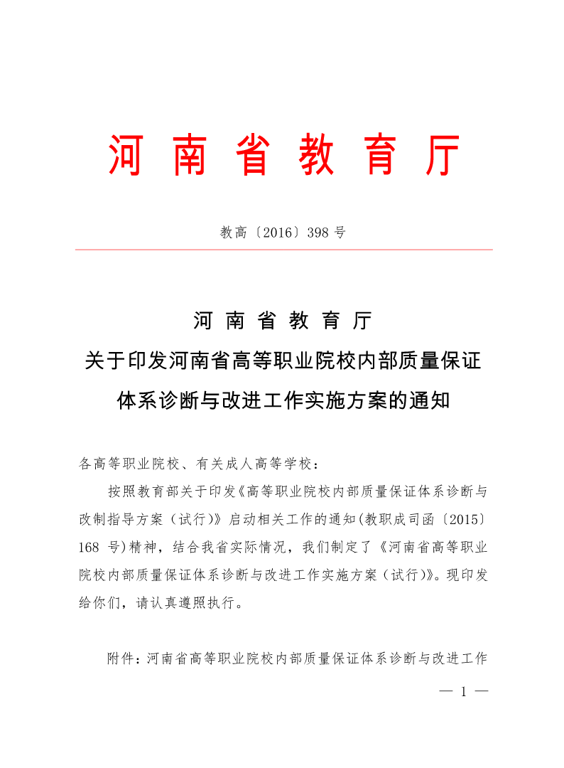 河南省教育厅诊断与改进整体建设方案(2018年发布)