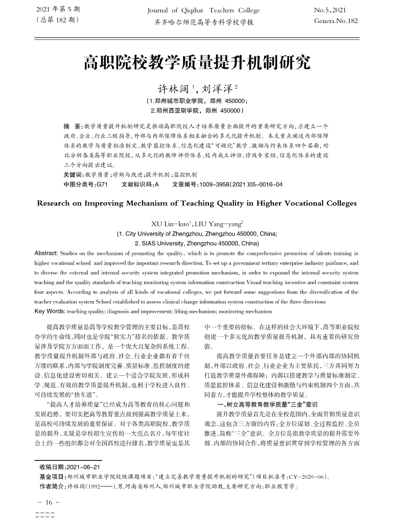 课题组论文-—高职院校教学质量提升机制研究