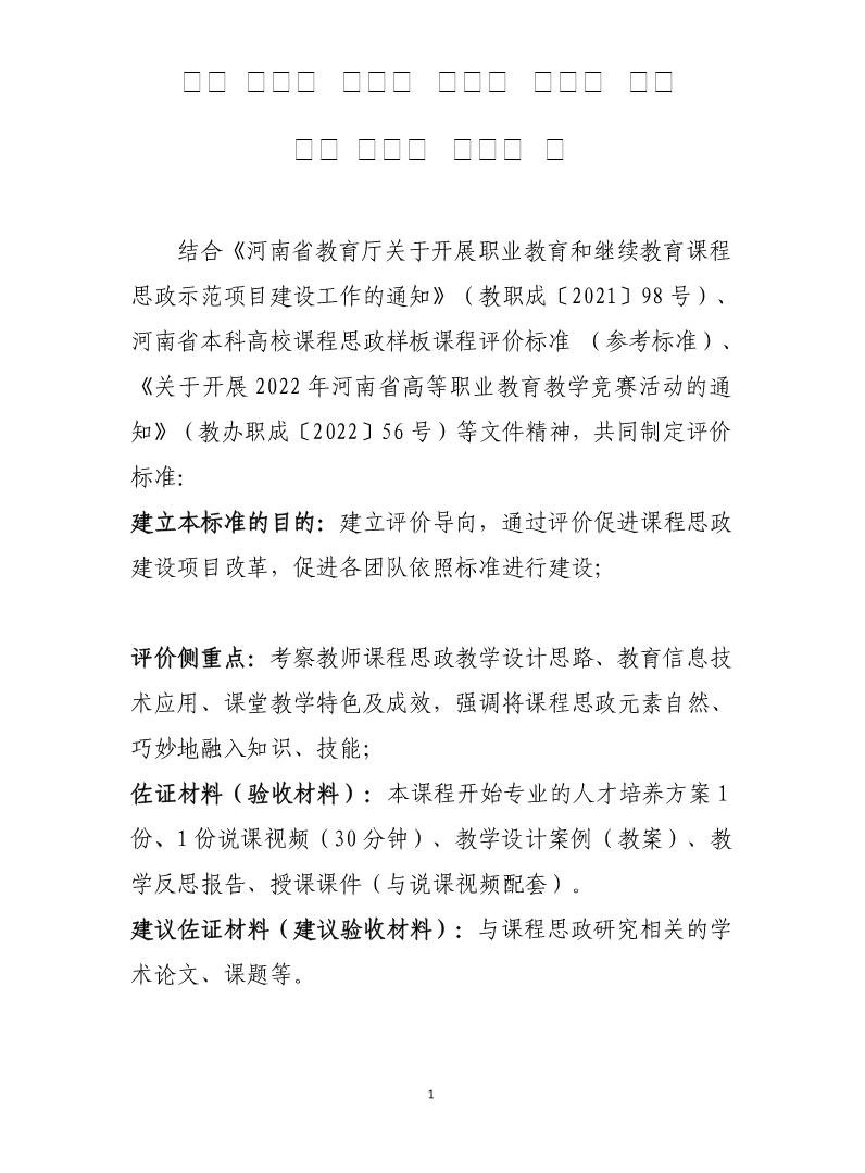 (评价标准)郑州城市职业学院课程思政建设项目评价标准