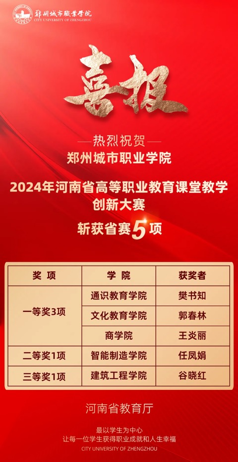 郑州城市职业学院课堂教学创新大赛夺五金,刷新历史佳绩!