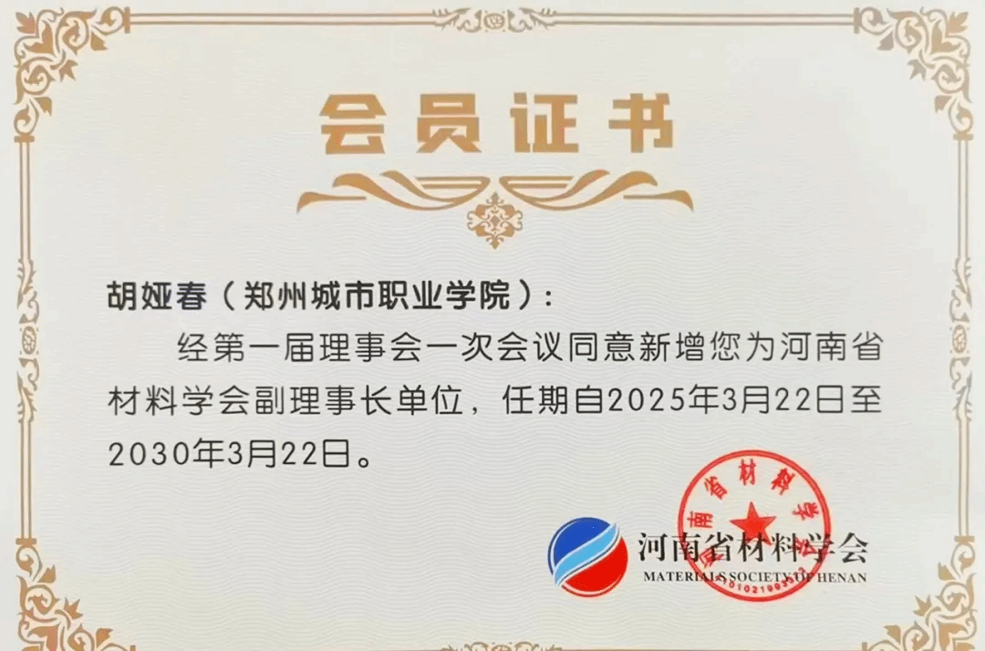 河南省材料学会第一届理事会新增郑州城市职业学院为副理事长单位