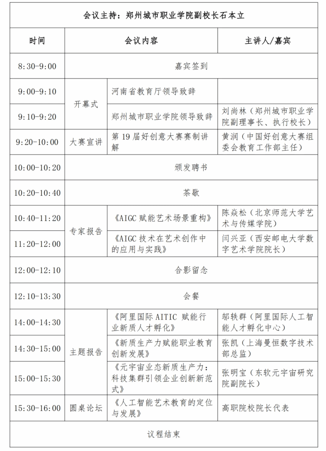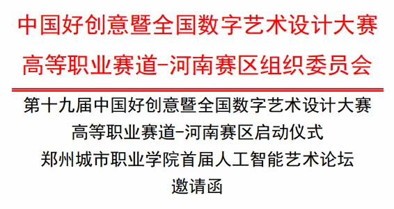 第十九届中国好创意暨全国数字艺术设计大赛高等职业赛道-河南赛区启动仪式郑州城市职业学院首届人工智能艺术论坛邀请函