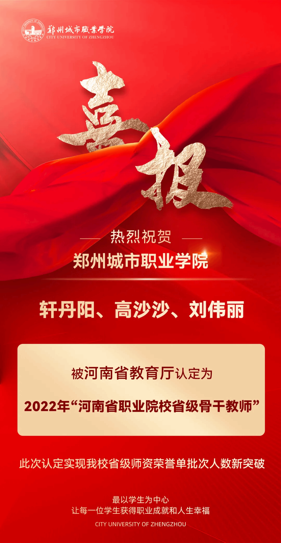 祝贺!郑州城市职业学院3名教师获评省级骨干教师称号