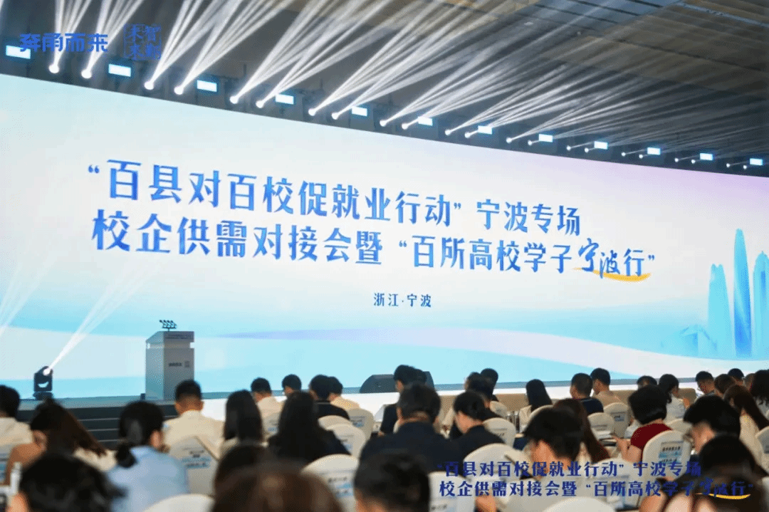 为深入贯彻落实国家关于高校毕业生就业工作的决策部署,深化产教融合、校企合作,6月10日,由教育部高校学生司(高校毕业生就业服务司)发起,中共宁波市委人才工作领导小组办公室、宁波市人力资源和社会保障局主办的“百县对百校促就业行动”(宁波专场)校企供需对接会暨“百所高校学子宁波行”活动在宁波国际会议中心隆重举行。