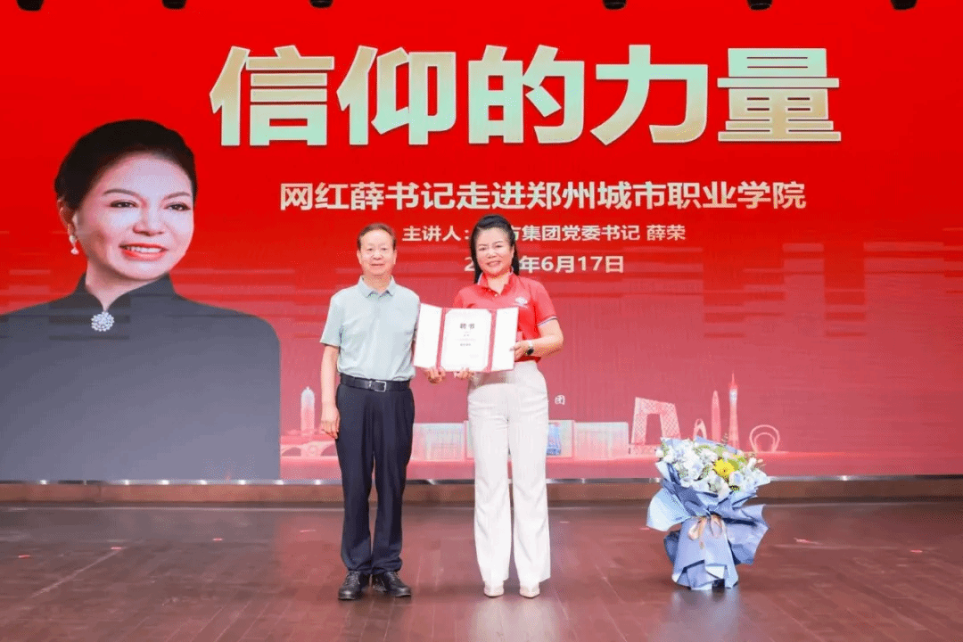 为深入学习宣传贯彻党的二十大和党的二十届三中全会精神,坚定青年学子的理想信念,激发奋进力量,6月17日,党的十九大、二十大代表,全国劳动模范、全国三八红旗手标兵、全国优秀党务工作者薛荣应邀走进郑州城市职业学院,为师生带来一堂生动的党课。校长徐洪波、校长助理段龙飞、各相关职能部门负责人、各二级学院党总支(副)书记及400余名师生代表共同聆听。这堂特别的党课,是学校精心打造的“大咖进校园”系列活动的重要篇章。