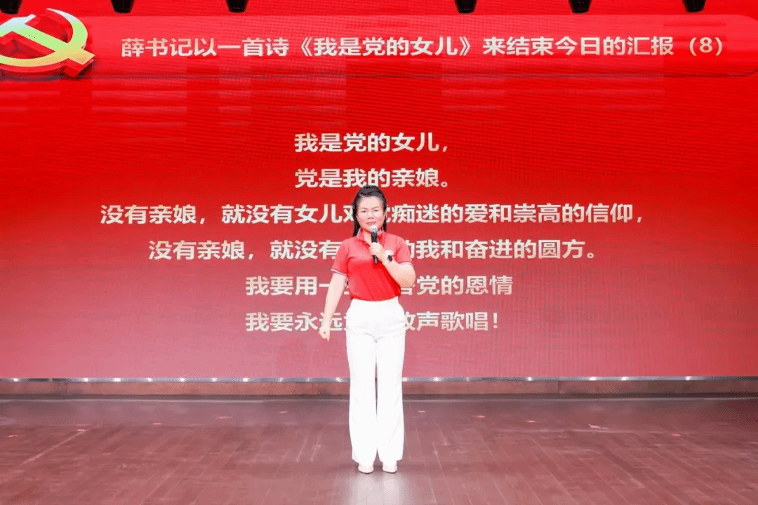 薛荣的讲述没有华丽的辞藻,充满了生命的韧劲。她深情回顾了自己从一名下岗工人到带领团队艰苦创业,最终打造出知名企业的奋斗历程。面对困境,是“听党话、跟党走”的坚定信仰,支撑她一次次攻坚克难。她说道:“信仰不是挂在嘴边的口号,而是刻进骨子里的坚守,是融入血脉的行动。”她分享的每一个故事,都是对“共产党员的初心与担当”最生动的诠释。