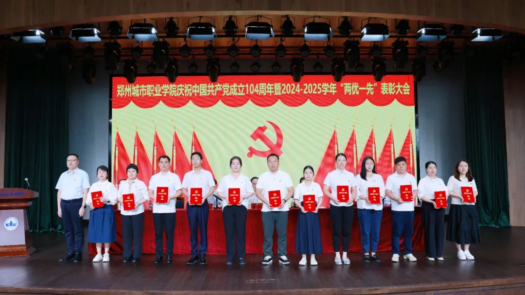 郑州城市职业学院召开庆祝中国共产党成立104周年暨“两优一先”表彰大会