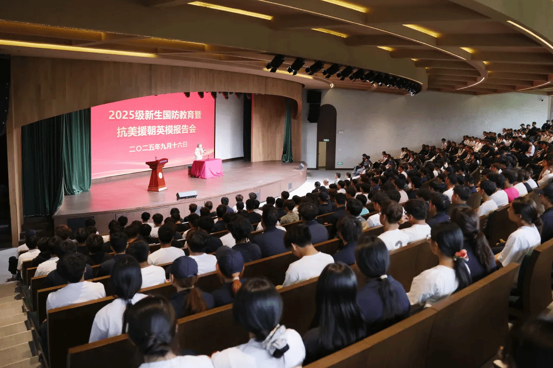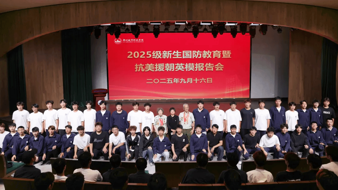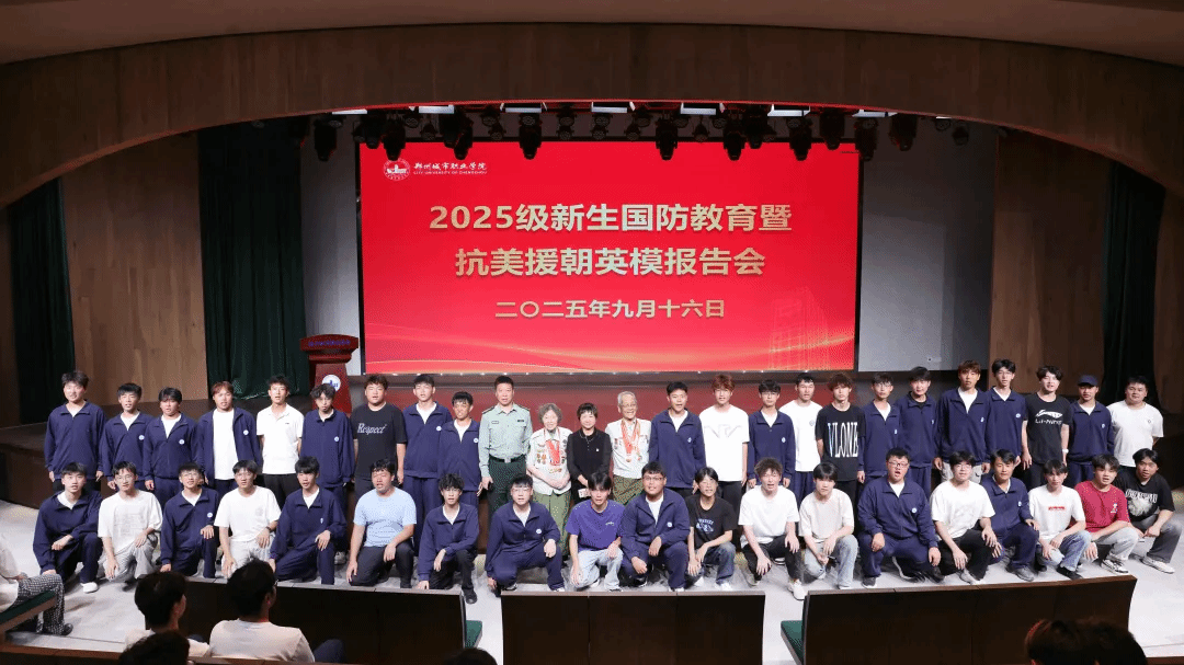 在九一八事变纪念日临近、中国人民抗日战争暨世界反法西斯战争胜利80周年纪念活动开展之时,9月16日下午,郑州城市职业学院2025级新生国防教育暨抗美援朝英模报告会在报告厅举行,“线上 + 线下”同步开讲,为新生带来深刻“国防教育第一课”,让胜利80周年的和平荣光与抗美援朝的英雄气概同频共振。