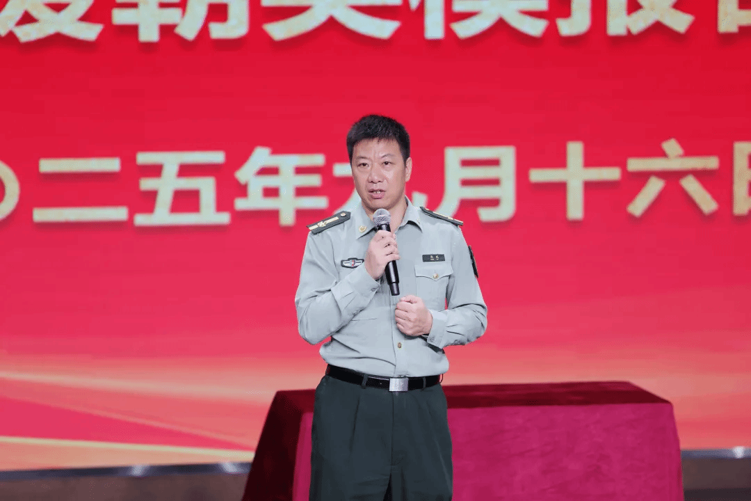 作为全国队列专家、河南省国防教育师资库专家张威进行了主题宣讲。他扎根空降兵特种部队的经历,国庆阅兵场 “米秒不差” 的风采,以及 98 年抗洪抢险一线挺身而出的担当,深深震撼了每一位观众。“三次个人三等功、两次集体二等功、一次集体一等功”,这一枚枚沉甸甸的勋章,是他 “以身许国” 的最好见证。