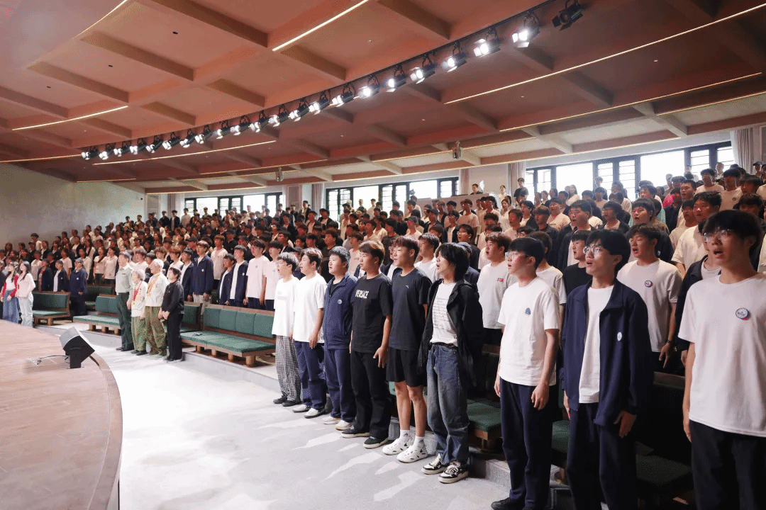 报告会在庄严的国歌声中拉开帷幕。伴着激昂的旋律,全体观众昂首肃立,齐声高唱。这一刻,对祖国的崇敬与热爱,在歌声中凝聚成磅礴的力量。
