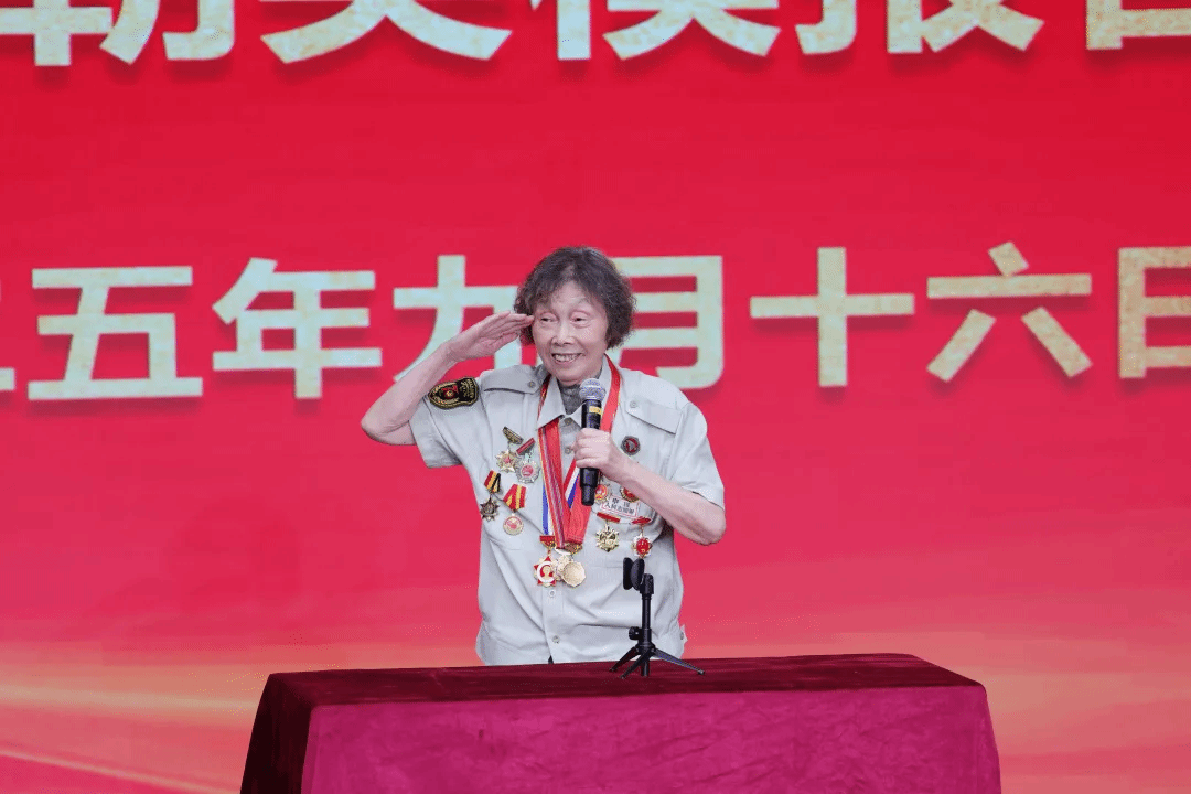 90岁高龄的柳岳继老英雄,曾是 15 军文工团战士,在上甘岭战役的枪林弹雨中,她化身 “上甘岭上的百灵鸟”,用歌声驱散战友的恐惧、凝聚战斗的力量,更是电影《英雄儿女》中 “王芳” 的原型之一。一枚三等功勋章,镌刻着她对祖国的赤胆忠心。她在会上缓缓哼唱出记忆犹新的歌谣,讲述着当年参军的激动与兴奋,还用语言还原了真实的战斗岁月,每一个细节都饱含着对祖国的热爱与对和平的珍视。