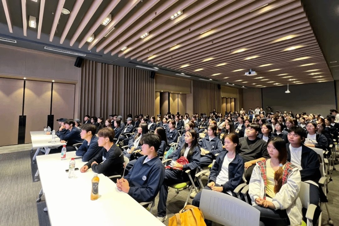 银基国际旅游度假区人力资源中心总经理王素莉为大家带来了一场关于行业现状与未来的温暖对话,鼓励大家“创造价值,成就自我”;王炎丽老师详细介绍了“岗课赛证融通、理实一体”的教学模式、以及学院与30余家文旅企业的资源优势,强调“入学即入职、毕业即就业”的培养目标;校友分享环节,通过视频的方式,呈现了老君山景区讲解员(周诺丹)、洛阳地接导游(郑梦晴)、深圳洲际酒店主管(贾林)等不同岗位毕业生的成长历程;银基在职实习生吴宇杰来到现场,分享实习4个月以来“从城院到银基”的成长与蜕变。听着他们从城院走向岗位的成长故事,许多同学表示:“原来梦想离我们这么近”。