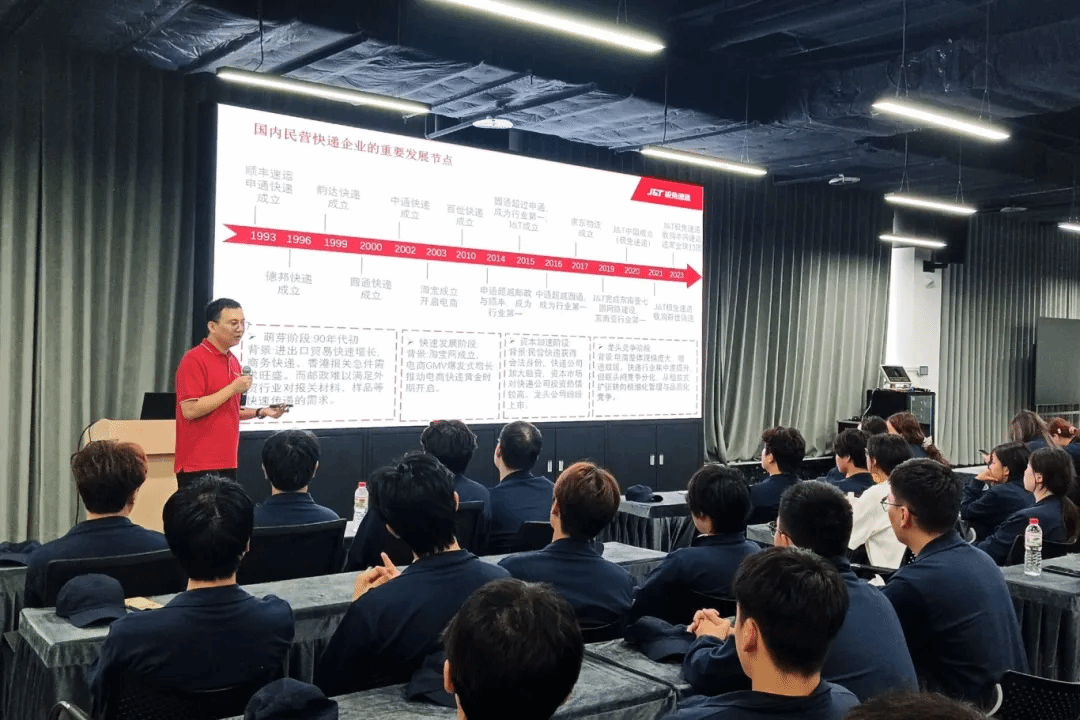 郑州极兔人事主管吕昊岳以顺丰、极兔为例,为大家梳理了中国快递行业的发展脉络;我校教师马相如结合极兔、京东、顺丰等企业真实项目实践,详细介绍了现代物流管理专业的“智能仓储+跨境物流实训”教学模式。通过深度产教融合,实现学职无缝对接的培养特色,聚焦实战能力提升,助力学生实习就业。