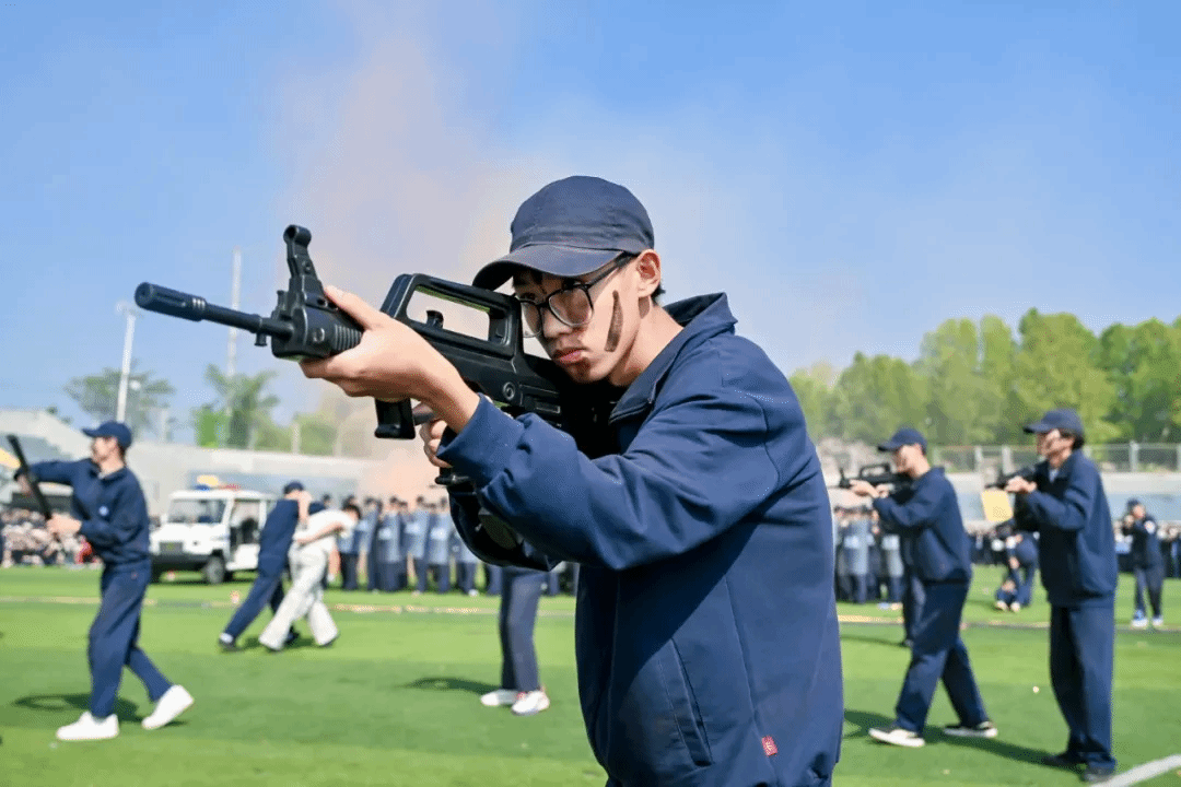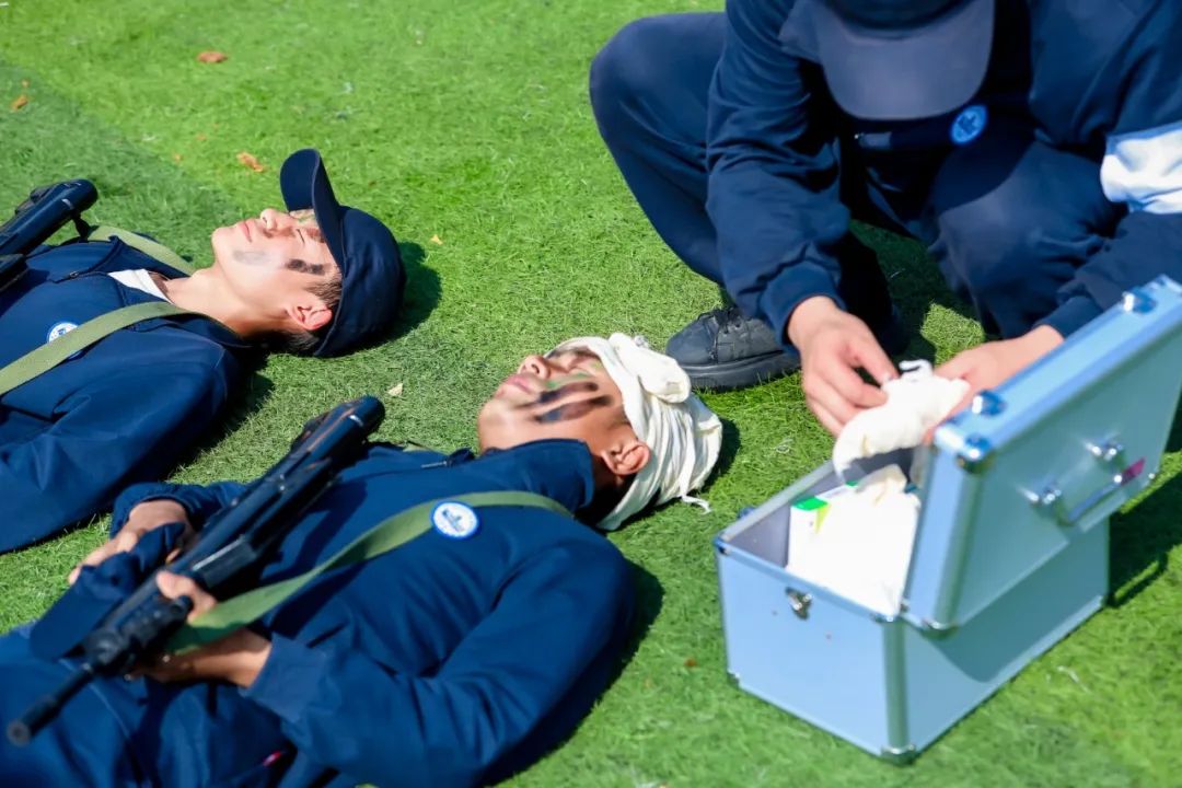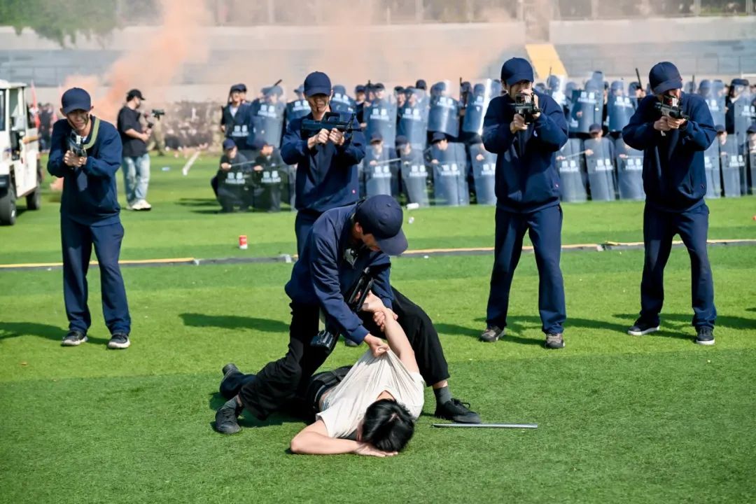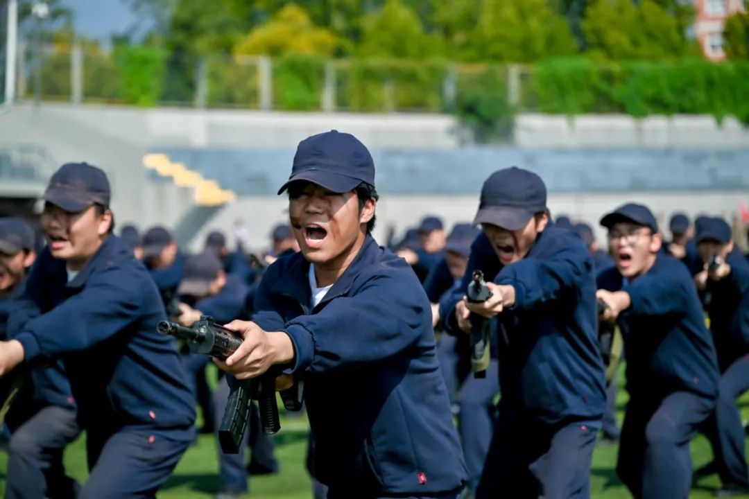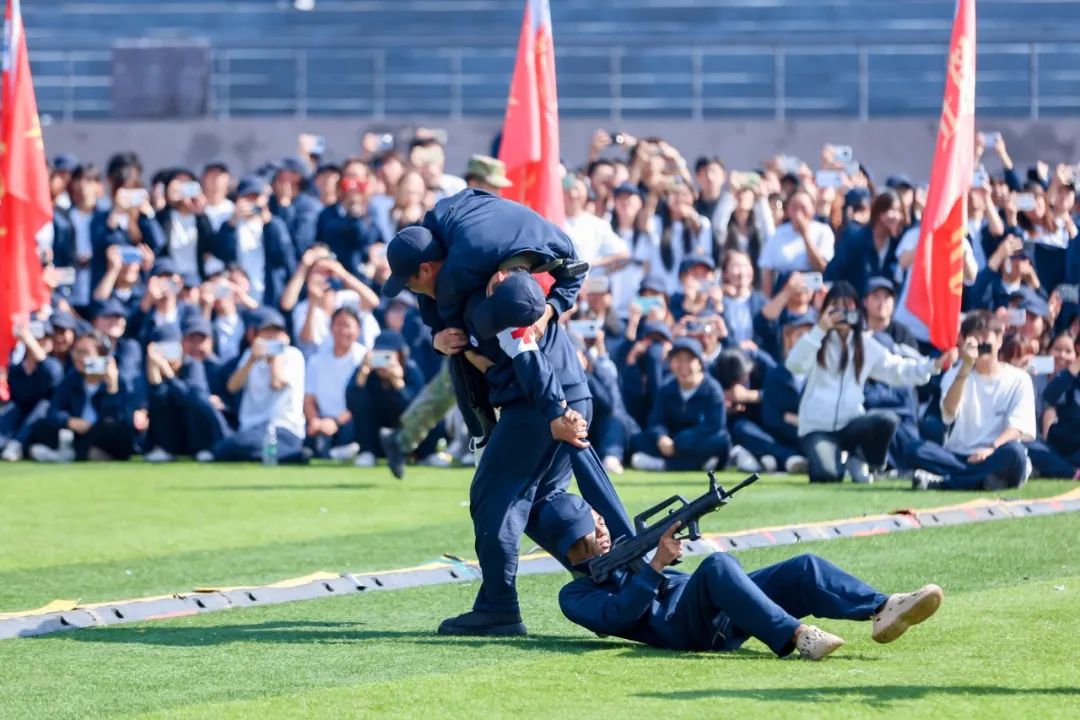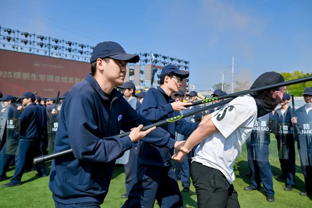 凭借训练有素的战术配合与身手敏捷的动作,蓝方队员们攻防有序,“三下五除二” 将 “不良分子” 成功制服,彰显了军训实战化、科技化的特色,引得全场掌声与欢呼此起彼伏。
