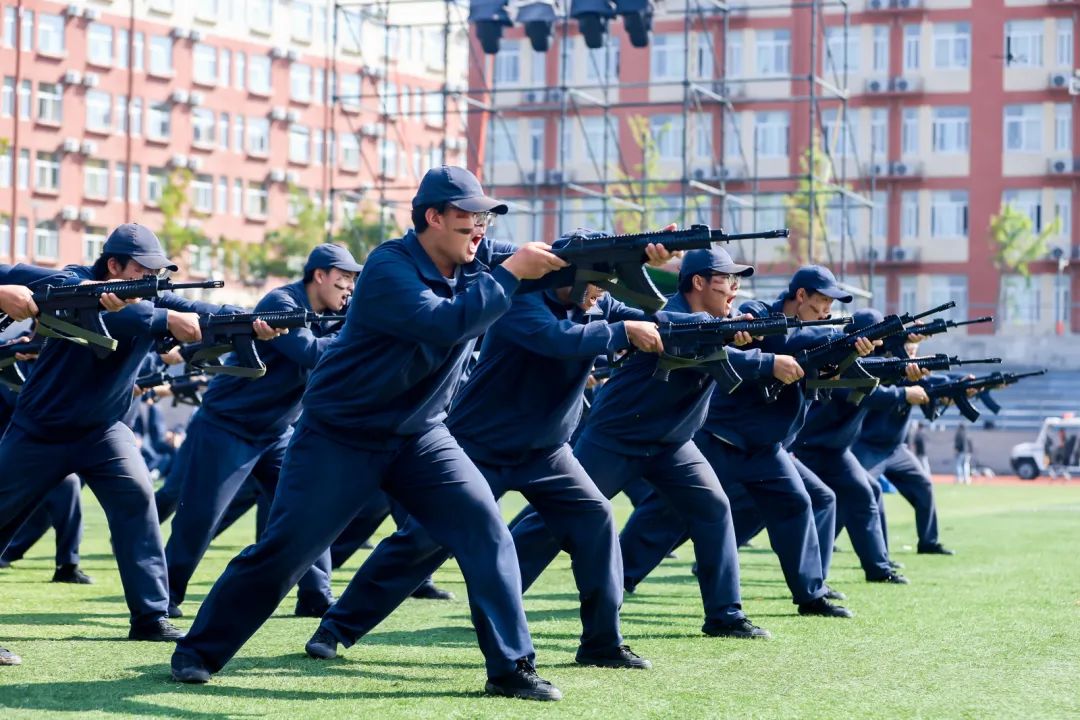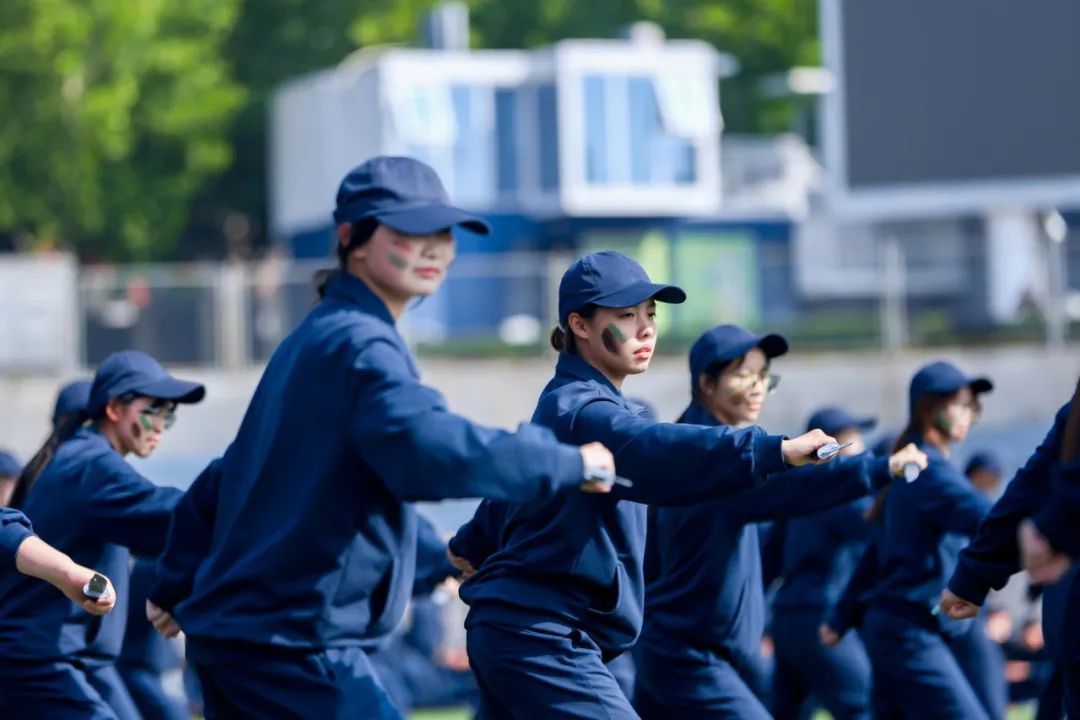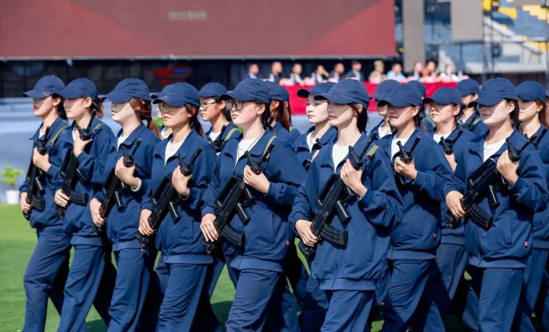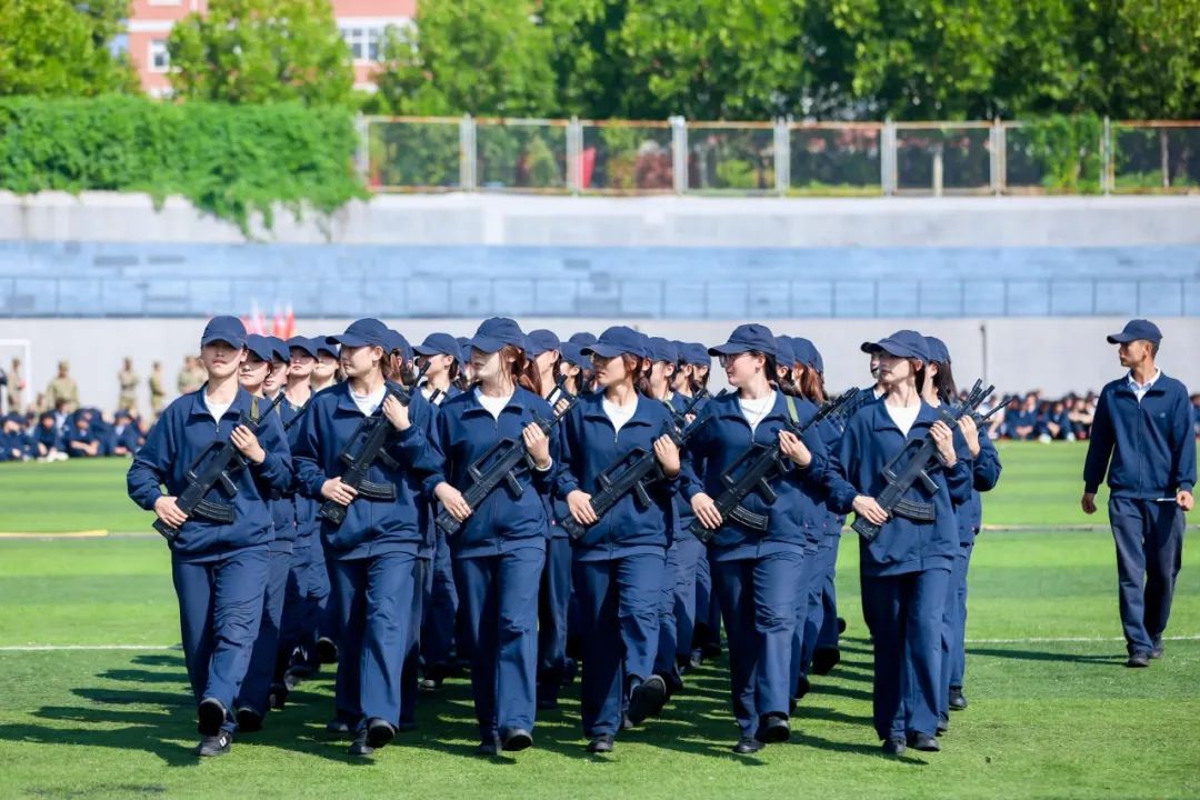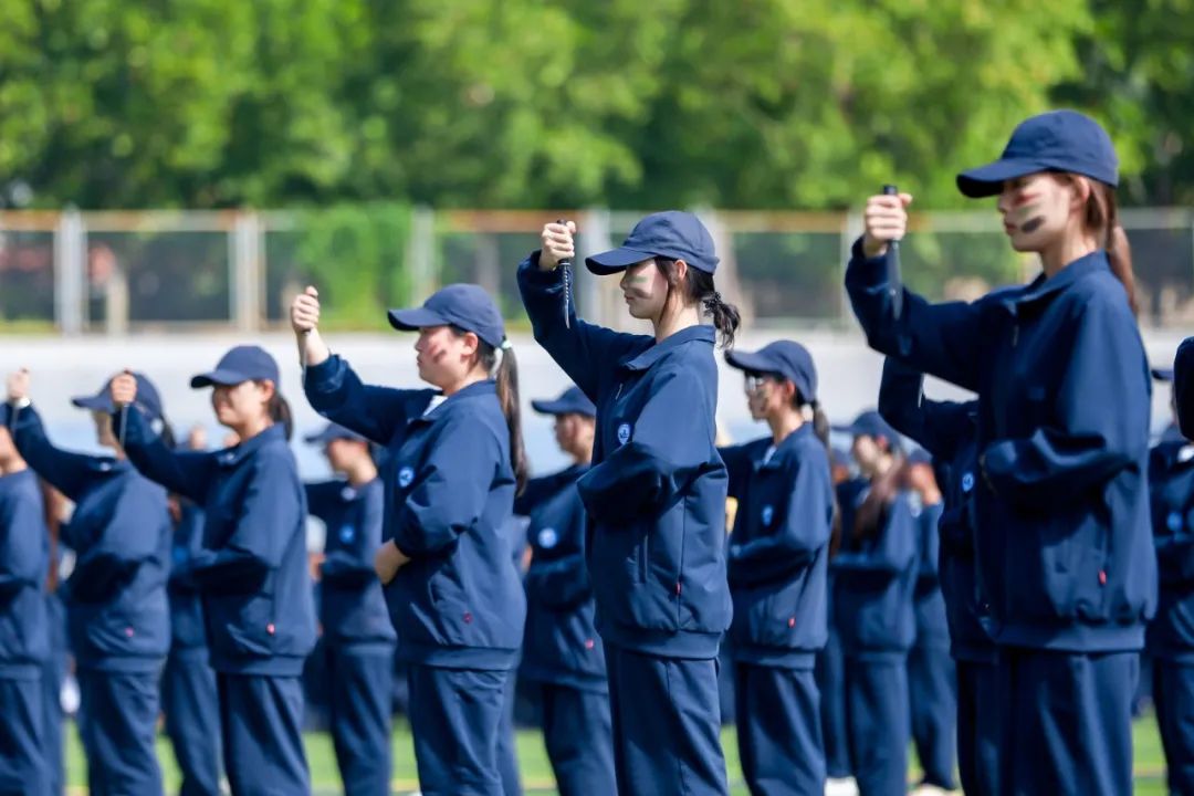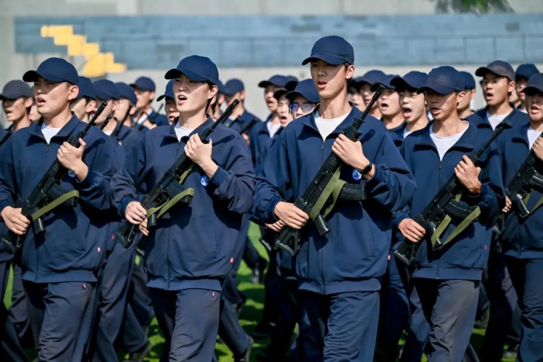 整齐的步伐、响亮的口号,显示出新生们严格训练后的过硬素质,每一个动作都精准有力,彰显着青春的朝气与纪律的力量。