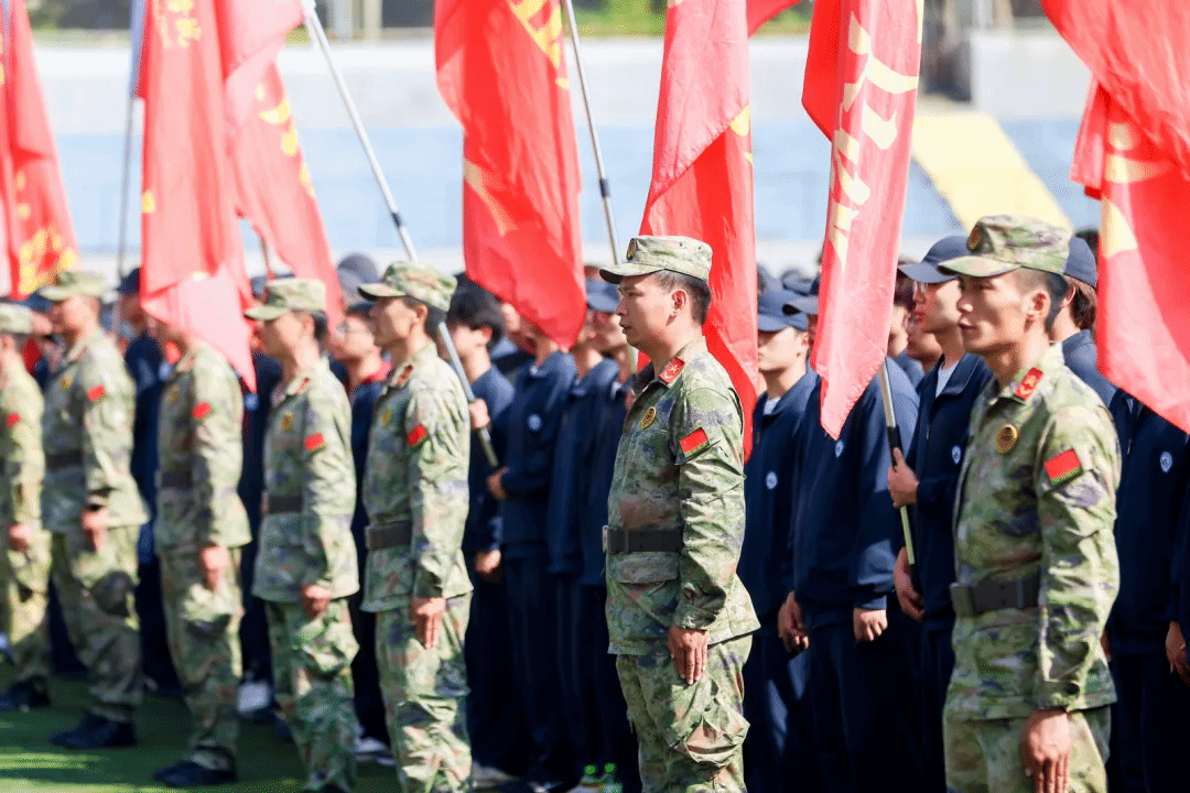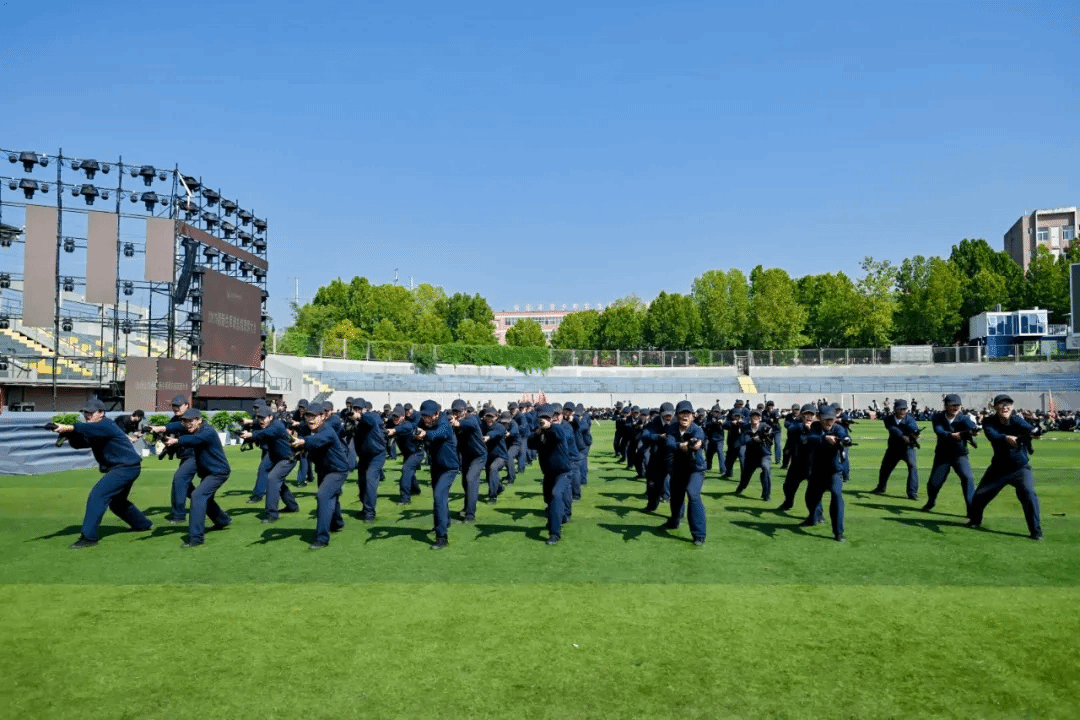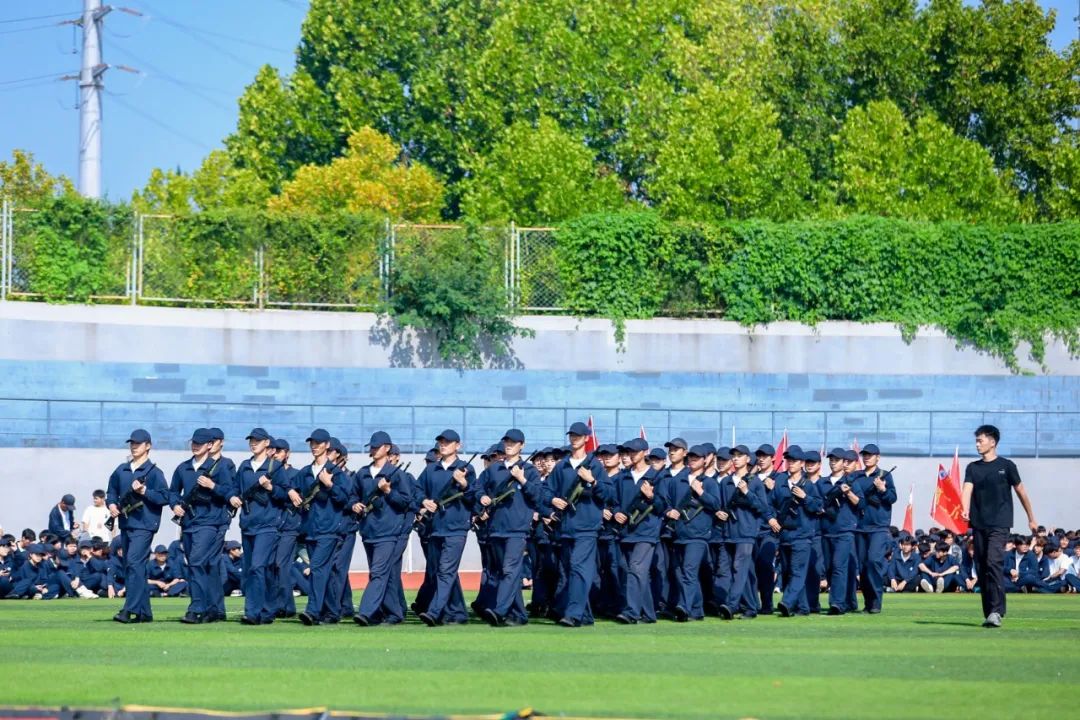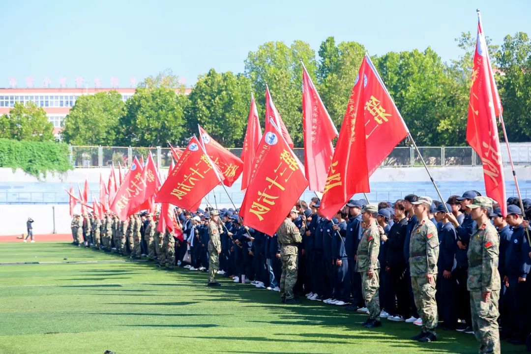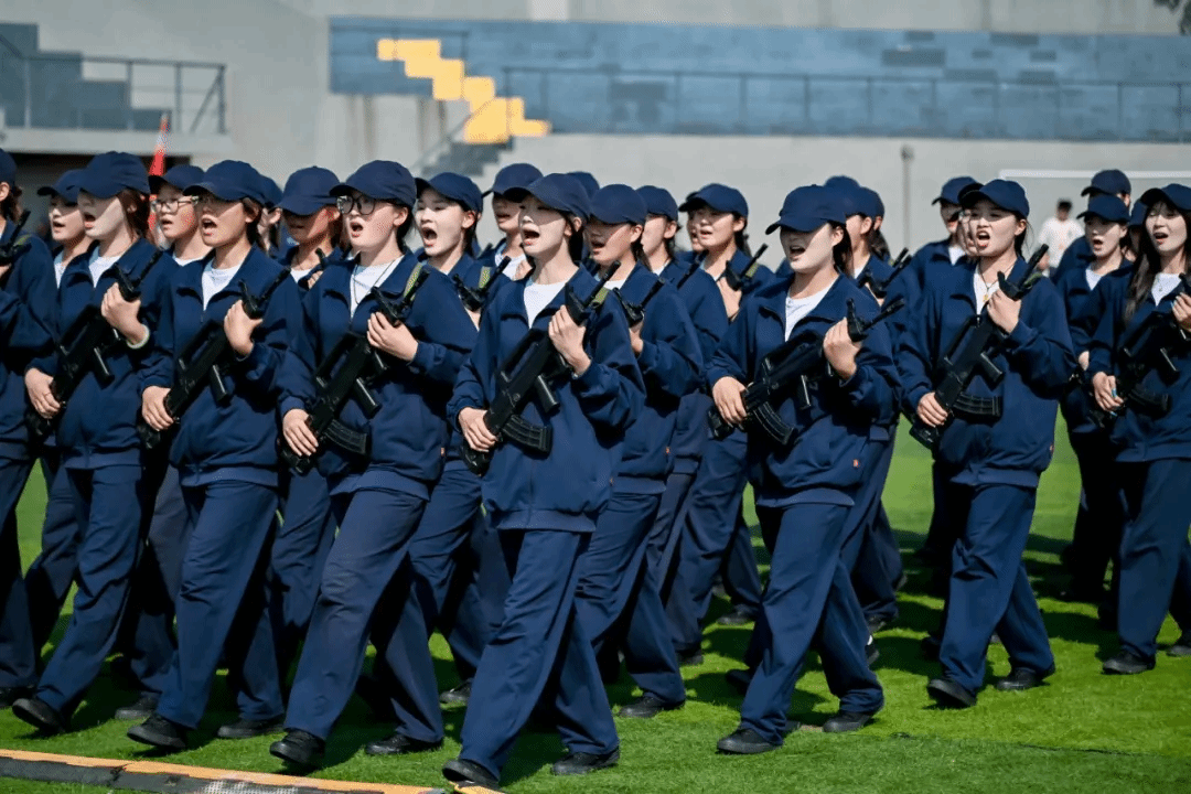 整齐的步伐、响亮的口号,显示出新生们严格训练后的过硬素质,每一个动作都精准有力,彰显着青春的朝气与纪律的力量。