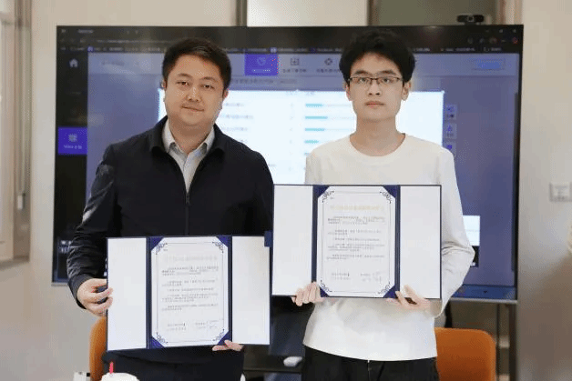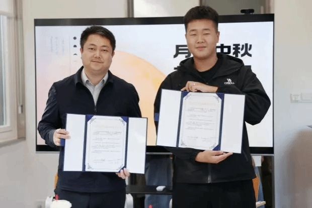 刘尚林郑重走上签约席,与5位建议学生代表逐一交换并签署《建议跟进承诺书》。这份承诺,不仅是学校对学生智慧的尊重与认可,更是推动校园治理持续优化的信用背书。签约过程中,他对每条建议均给予充分肯定,并为同学们颁发象征荣誉与责任的“金月亮奖”。