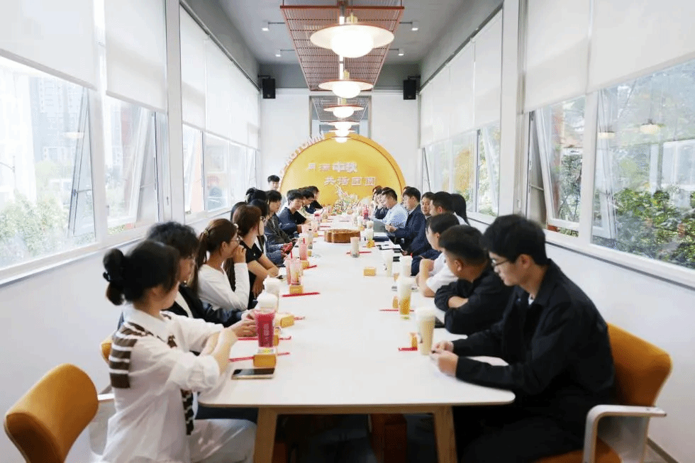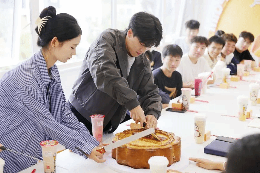 “校长请你吃月饼喝奶茶”环节,让中秋的氛围感瞬间拉满。师生共同切开直径40厘米的特制团圆月饼,在分享与笑语中传递着“城院一家亲”的温暖。这份定制的心意,不仅是节日的祝福,更是师生情感联结的生动写照。