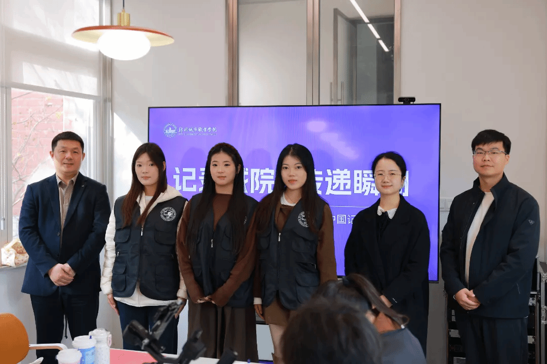 11月8日,第26个中国记者节如约而至,郑州城市职业学院以一场温馨而富有仪式感的特别活动,共同庆祝这一属于记者的节日。本次活动以“记录城院,传递声音”为主题,汇聚了校长助理鲁晓迪、相关部门老师、党委宣传部学生助理、大学生记者团和广播站成员,大家齐聚一堂,共庆节日、喜迎新人。