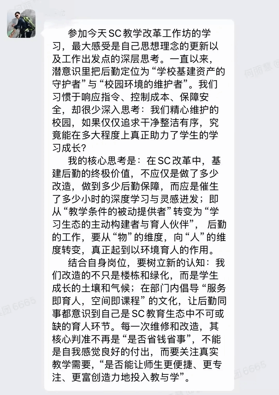 在总结环节,与会人员立足自身岗位,结合工作坊所学所悟,依次分享了心得体会与未来工作方向的转变思路。大家一致表示,将以“新三中心”理念为指引,将研讨共识切实转化为推动本职工作的具体行动,共同服务于学生成长与发展。本次工作坊凝聚了全校管理层的改革共识,明确了协同行动的路线,标志着郑州城市职业学院在教学改革与内涵发展上迈出坚实一步,为学校高质量发展注入新的思维动力与行动路径。