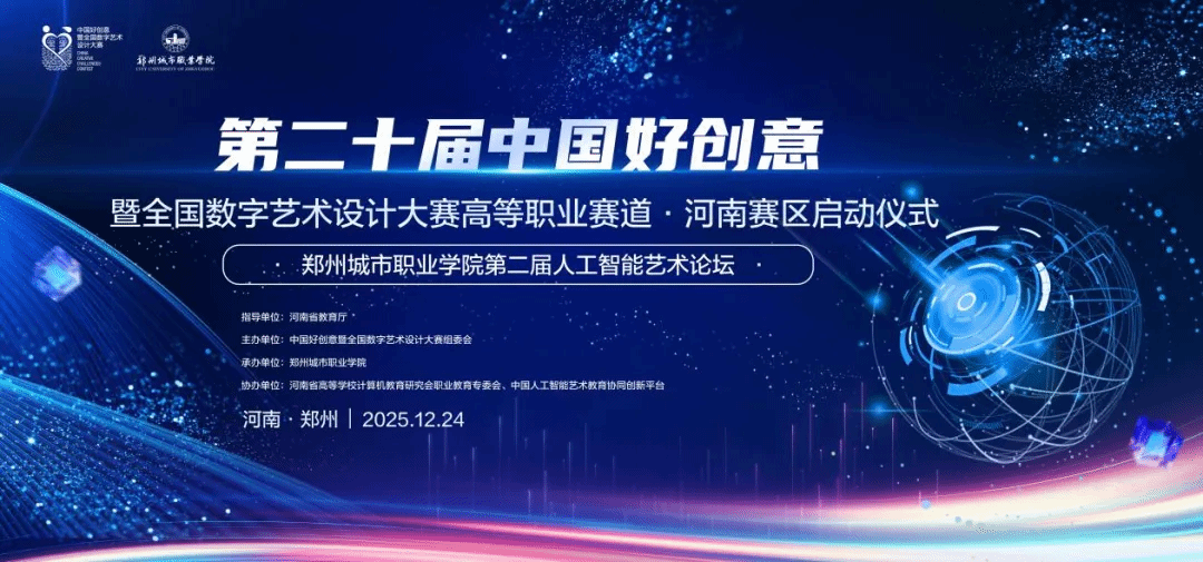 数字浪潮奔涌向前,智能时代已然来临。一场聚焦数字艺术与人工智能(AI)深度融合的行业盛会即将拉开帷幕。由中国好创意暨全国数字艺术设计大赛组委会主办、郑州城市职业学院承办的第二十届中国好创意暨全国数字艺术设计大赛高等职业赛道・河南赛区启动仪式,将于2025年12月24日在郑州城市职业学院隆重举行。作为本次活动的核心亮点,郑州城市职业学院第二届人工智能艺术论坛也将同步启幕,为中原地区数字创意产业注入强劲创新动能。