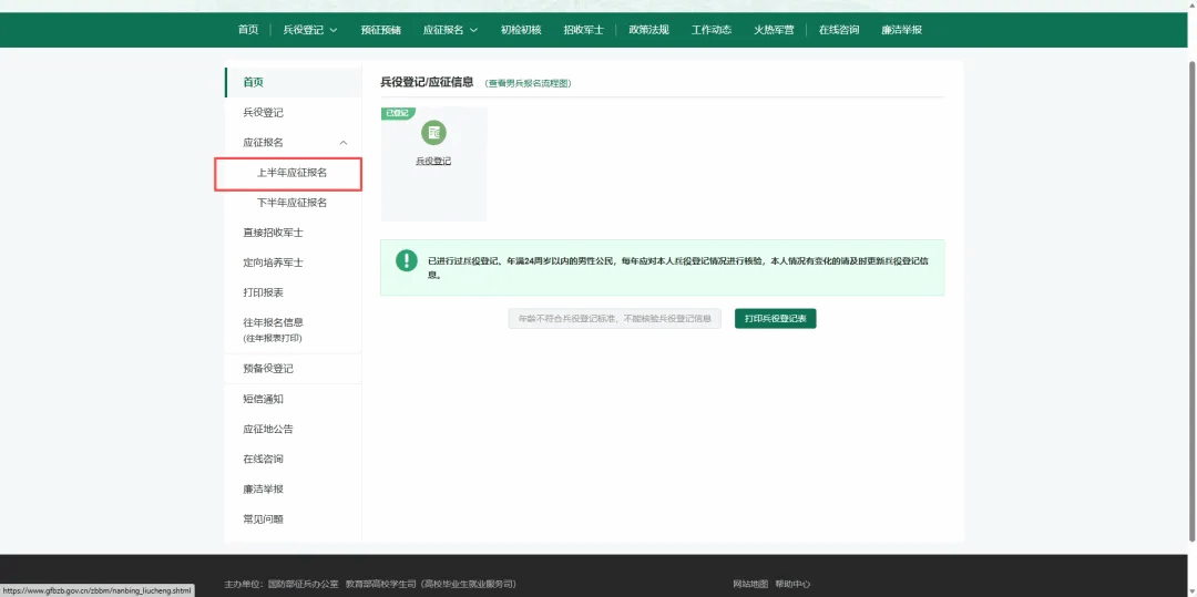1.兵役登记和报名信息修改: