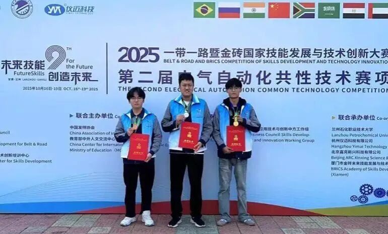 机电一体化专业师生在“一带一路暨金砖国家技能发展与技术创新大赛-电气自动化共性技术赛”全国总决赛中荣获得国家级一二三等奖3项,学校获评最佳优秀组织奖及优秀指导教师奖。