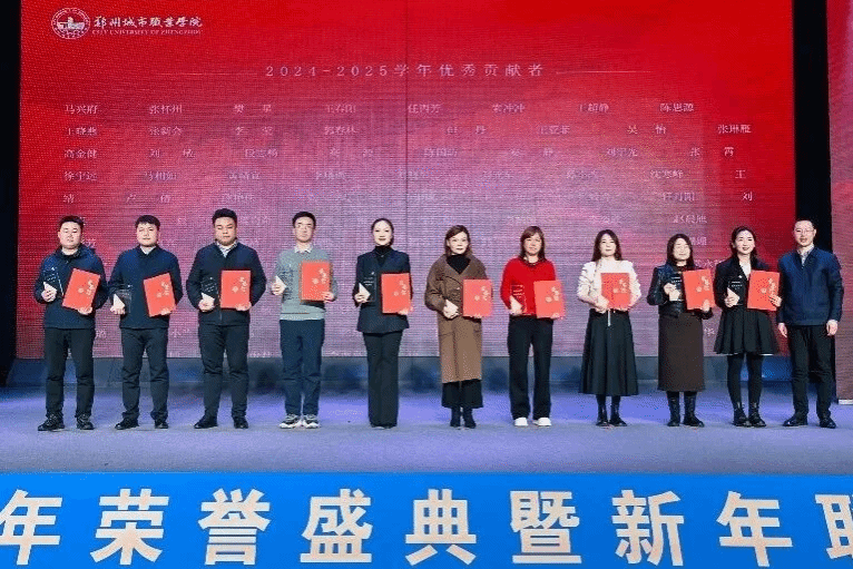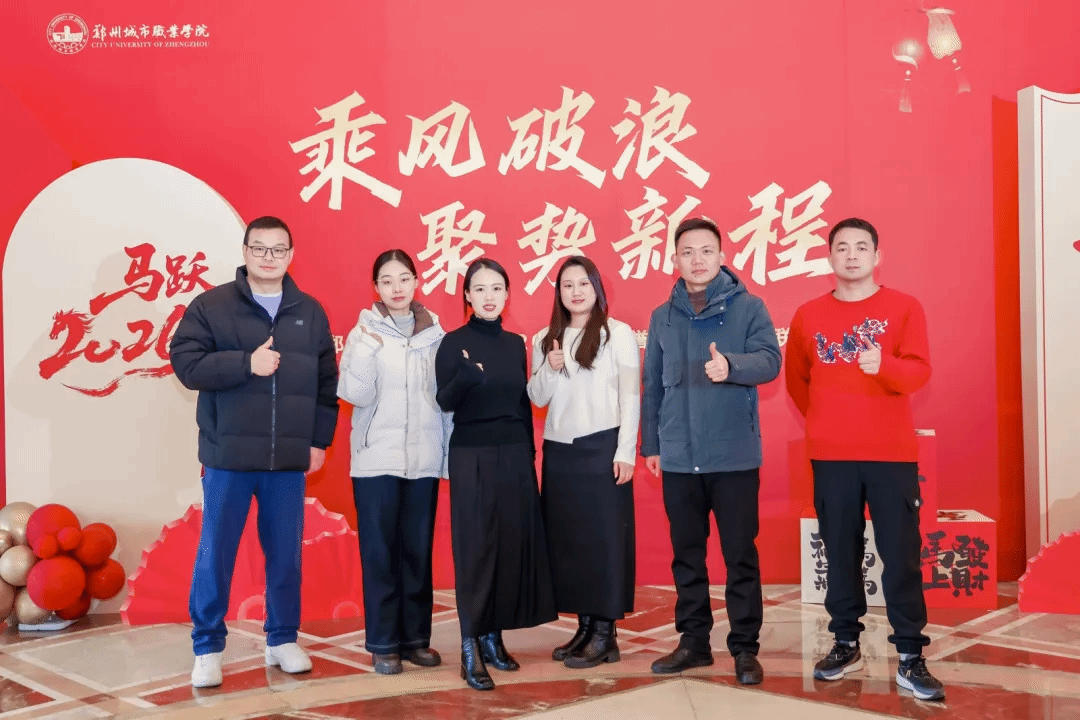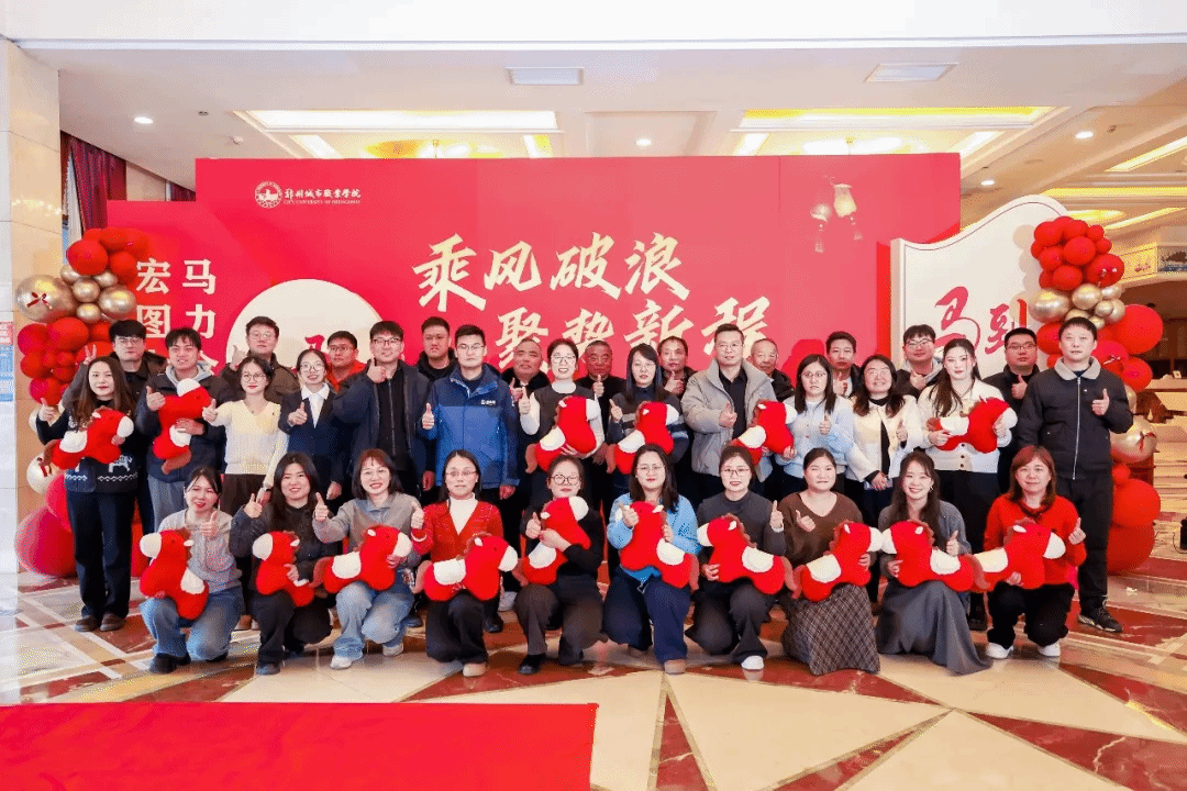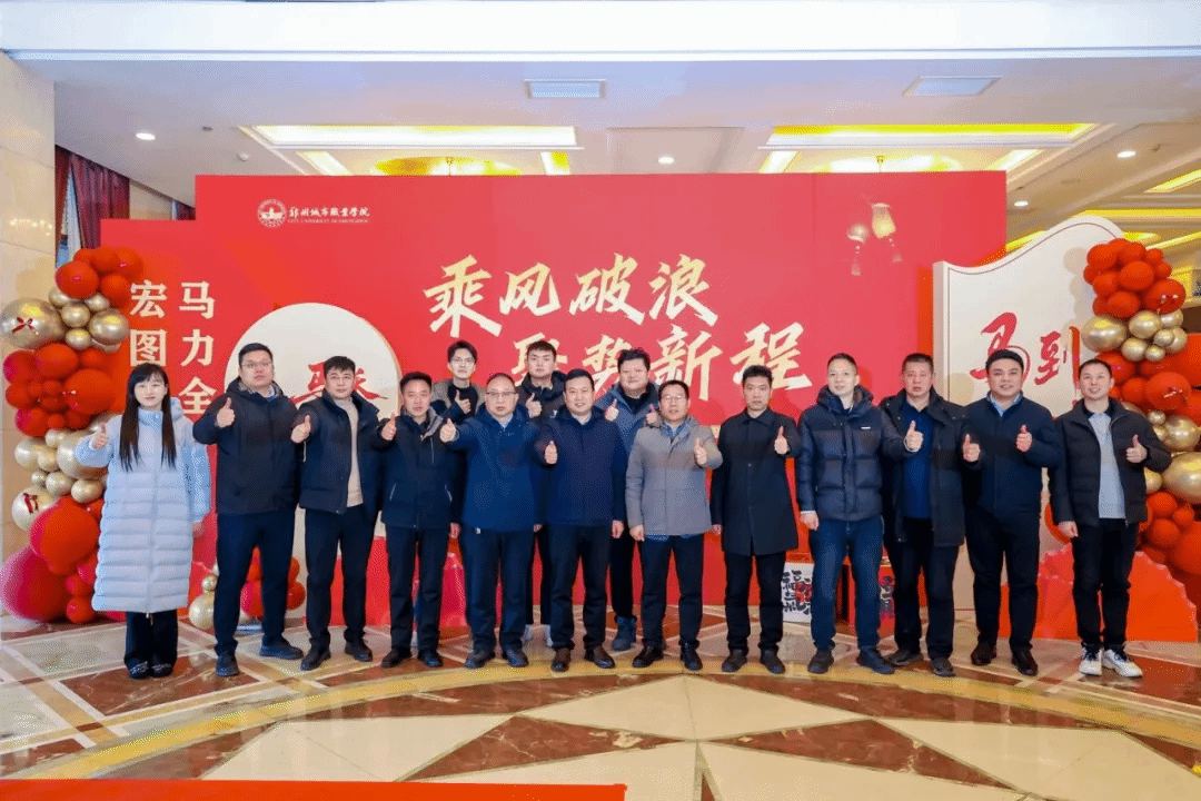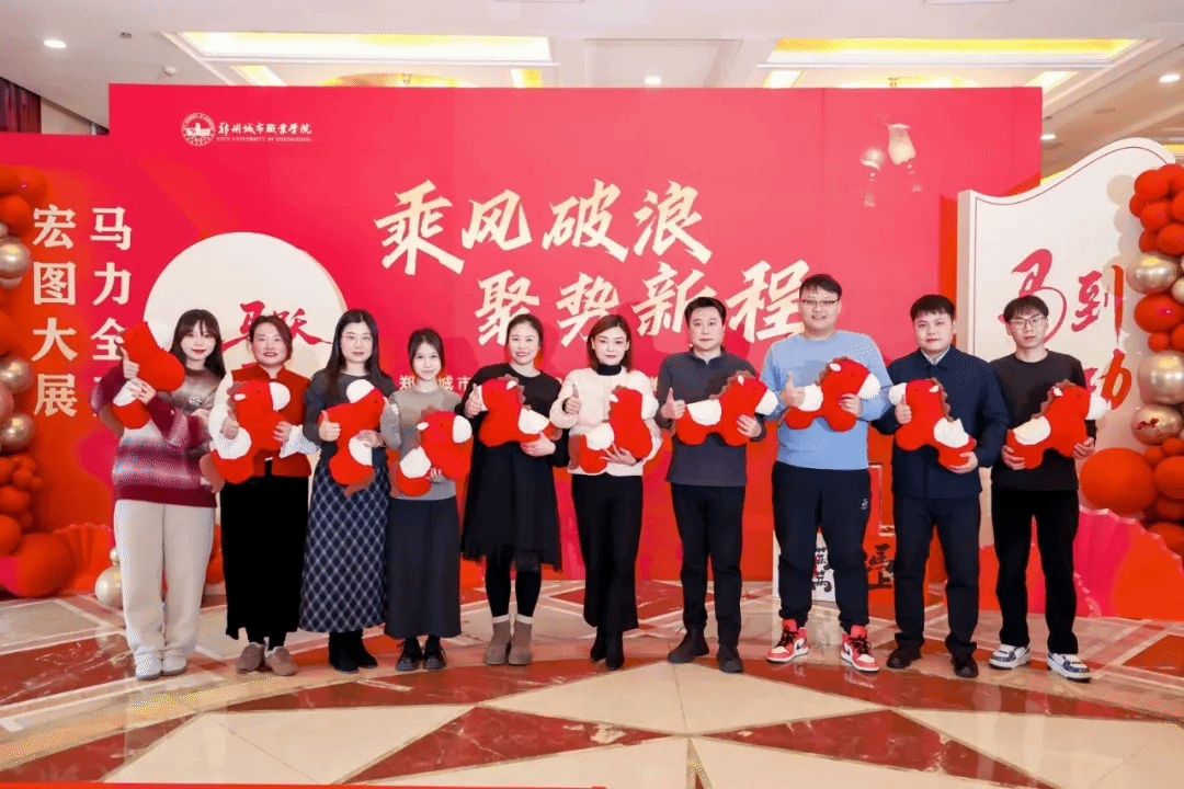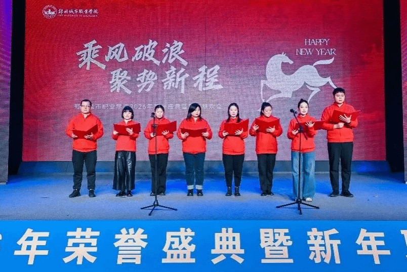 骏马迎春,共启新程。1月30日,郑州城市职业学院隆重举行"乘风破浪,聚势新程"2026年荣誉盛典暨新年联欢会。学校联席理事长、执行校长黄炜,党委副书记徐洪波,校长石本立,监事会主席丁雅荣、副校长谢照红,校长助理段龙飞、鲁晓迪与全体教职工欢聚一堂,挥别满载荣光的"十四五"收官之年,共赴充满希望的"十五五"开局新程。