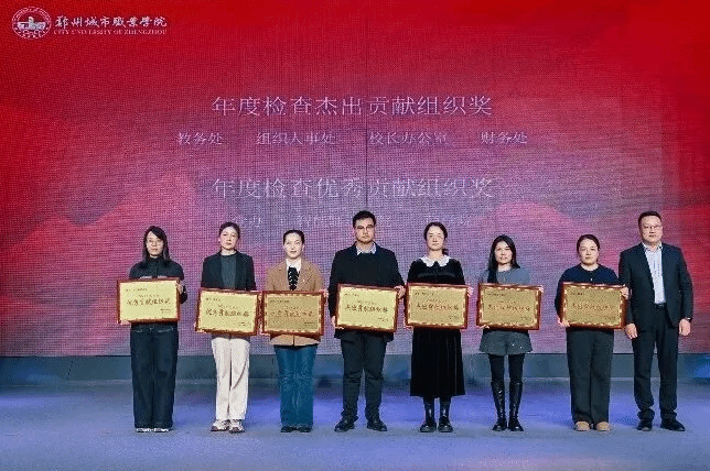 徐洪波校长荣获年度检查特殊贡献个人奖;教务处等7个集体、张俊君等20人分获杰出及优秀贡献组织与个人奖。