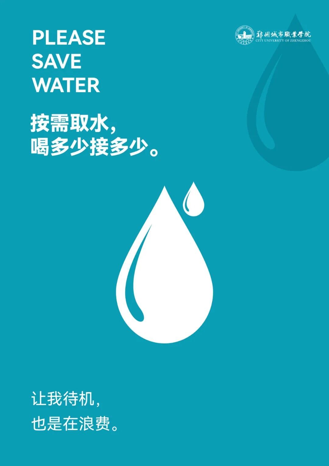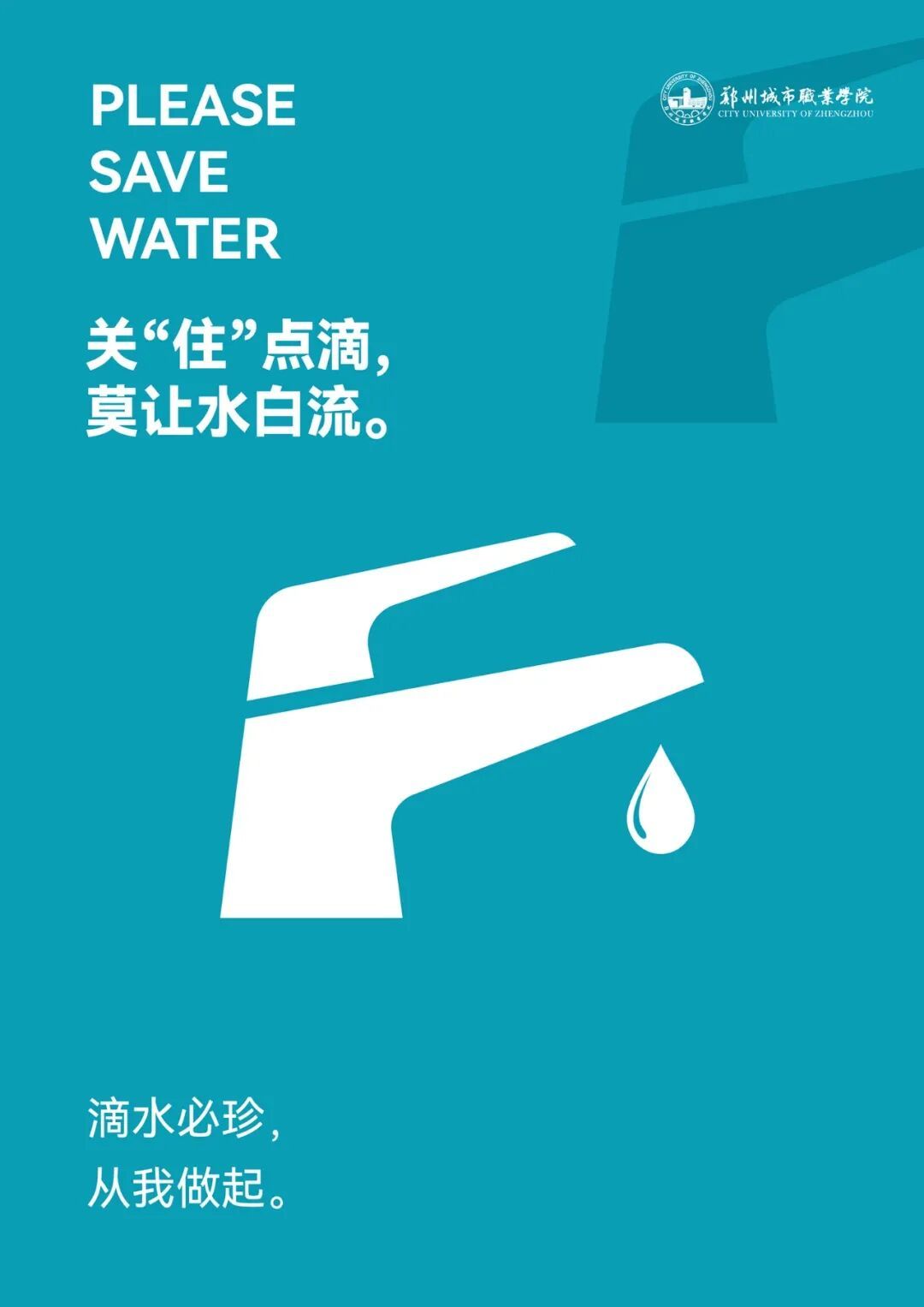 提示牌与校园建筑相映成趣,这些看似细微的指引,背后承载的是学校对ESG理念中“环境责任(E)”的深刻践行——环境可持续并非抽象的口号,而是将节能减排、水资源保护和低碳发展等绿色理念植根于学校发展历程里,拆解在师生的每一次举手投足中。值得一提的是,郑州城市职业学院就是以这种落地生根的实际行动在2024学年被评为了“市级节水型高校”。