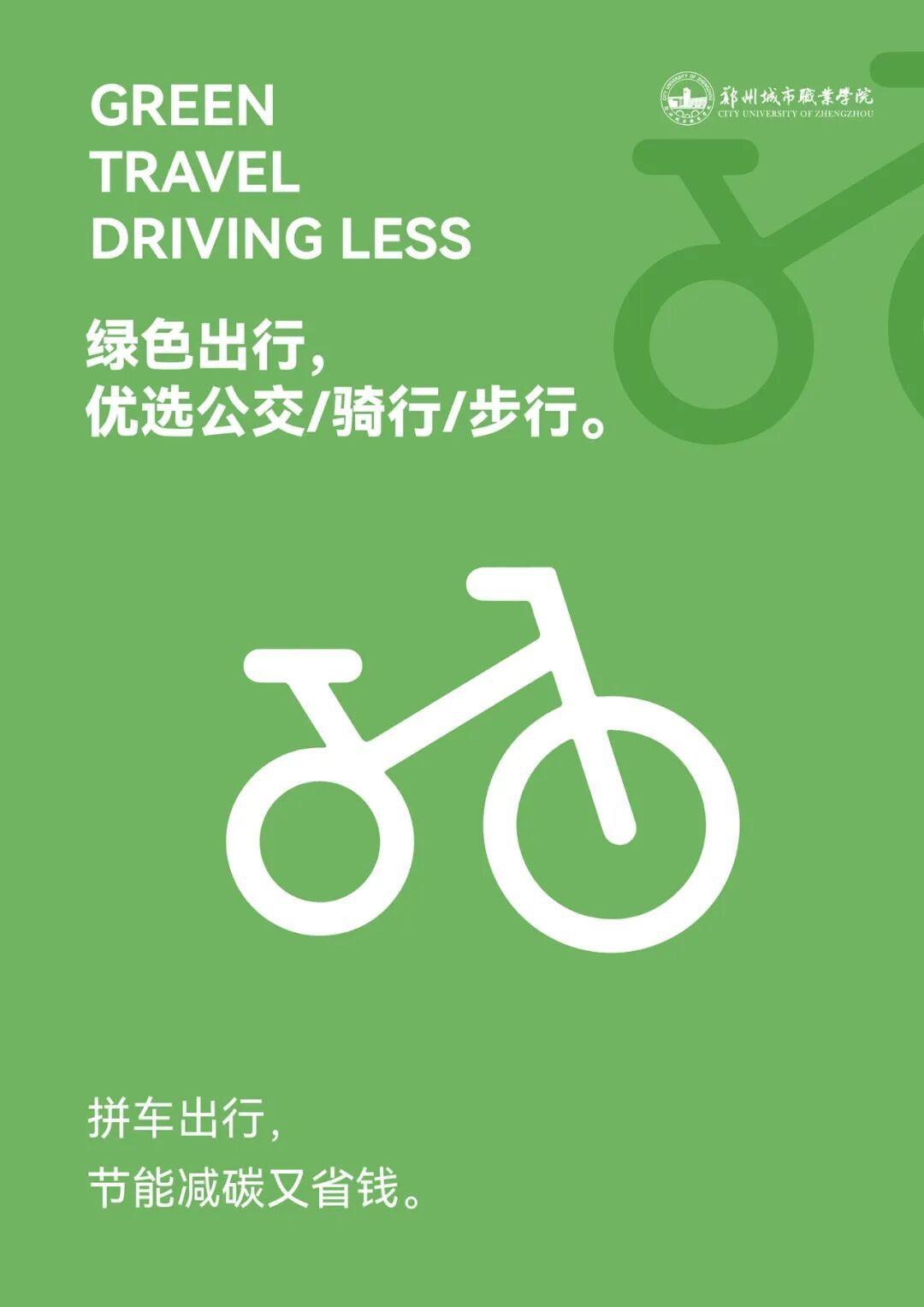 【电之脉·教室之光】守护每间教室、实训室、图书馆,提醒师生们“人走灯灭,人离电断”。 【水之源·生命之泉】驻守于水龙头、饮水机旁,呼吁大家“关‘住’点滴,莫让水白流”。【纸之林·学问之载】现身文印室、自习区,倡导“纸张双面用,学问更‘经济’”。【室之洁·会议之序】张贴于会议室前后,引导共建“窗明几净,井然有序”的会议环境。【行之绿·青春之风】分布于主干道、停车场,鼓励“步履轻盈,骑行当先”的绿色校园出行。