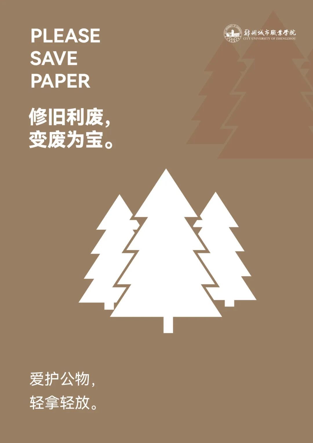 不同于传统校园节能宣传的生硬说教,郑州城市职业学院的这批绿色节能提示牌,以清新的视觉设计、温柔的话语表达,渗透在走廊、墙壁、教室、办公室等每一个师生日常场景中。