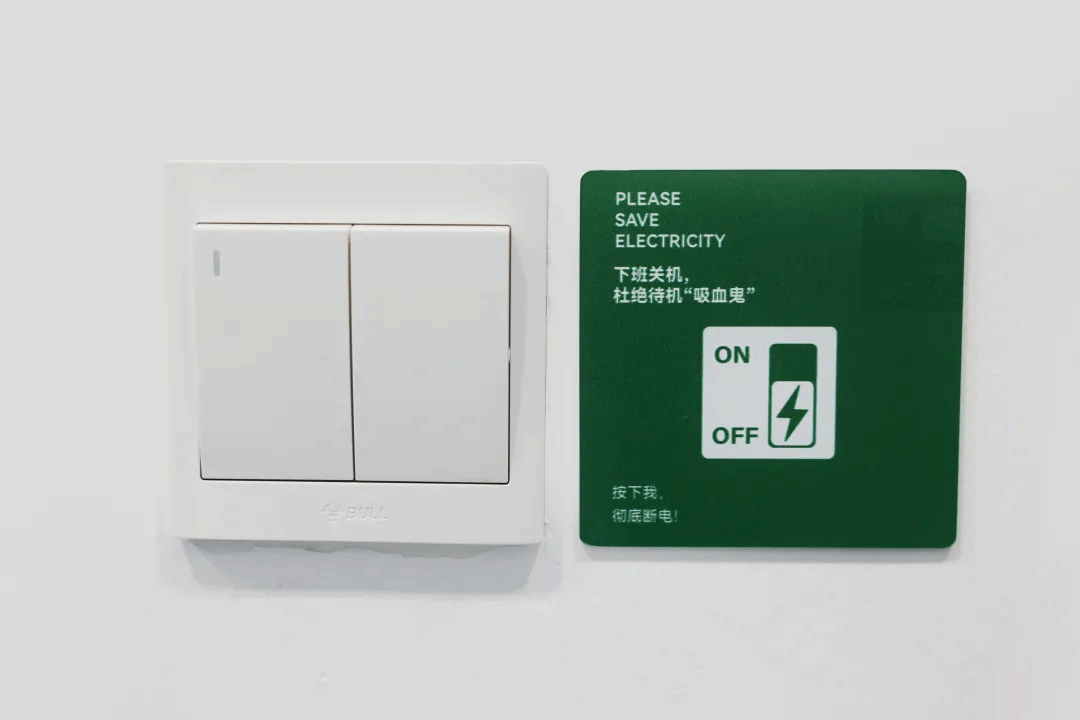 郑州城市职业学院摒弃了单向的规则灌输,选择以共情式的话语传递绿色理念,“按下我,彻底断电”“您忘记的,或许正是地球所珍惜的”这种温柔的提醒,已经将环境教育转化为一种文化浸润。一张张小小的节能提示牌,实则是在潜移默化中培养每一位个体的环境素养与责任意识。