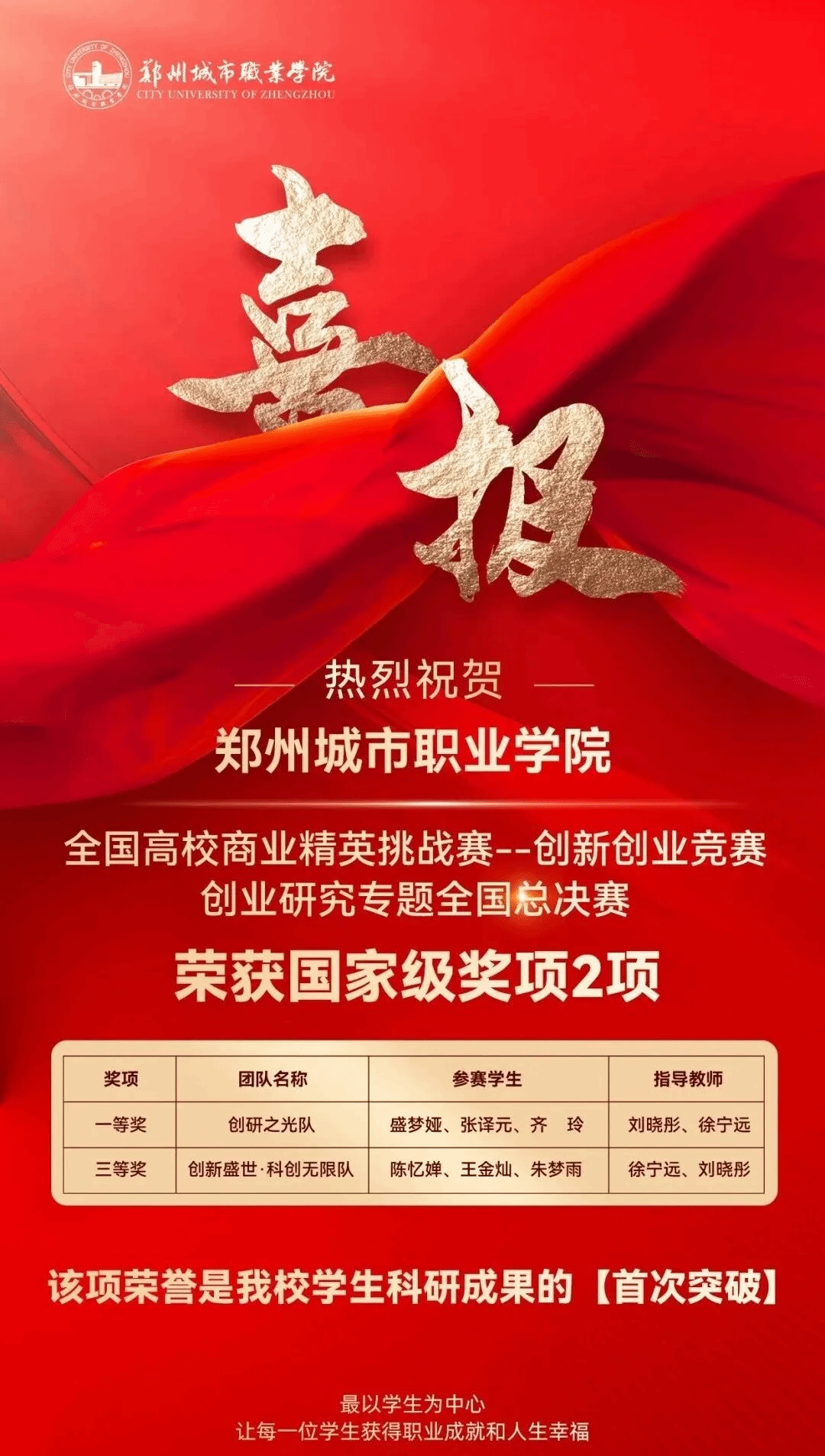 近年来,学校不仅从细微处营造安心从教、潜心育人的环境,更系统推进教师专业成长与团队建设。通过持续赋能,教师队伍在教学创新与技能竞赛中屡获殊荣:多名教师在省级教学能力比赛中获奖,指导学生在全国技能大赛、创新创业大赛中获得国家级、省级荣誉600余项。这些成果,正是教师心无旁骛投身教育、学校“家文化”滋养育人实践的直接体现。