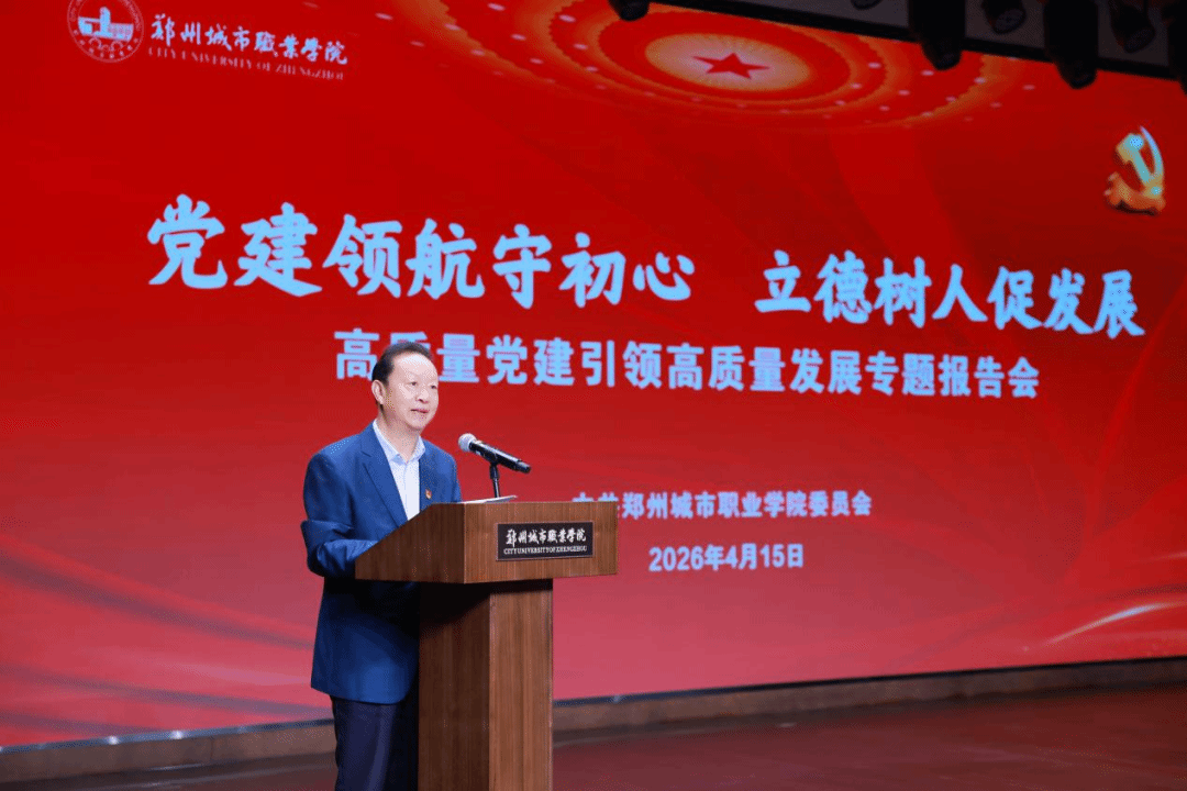 为深入学习贯彻中共河南省委教育工作委员会近期关于全面加强高校党建工作的会议精神,牢固树立和践行正确政绩观,以高质量党建引领学校事业高质量发展,4月15日,郑州城市职业学院举办高质量党建引领高质量发展专题报告会。执行校长黄炜、校党委副书记徐洪波等党政领导班子成员、全体党务工作者、党员代表、入党积极分子代表参加会议。校党委副书记徐洪波主持会议。