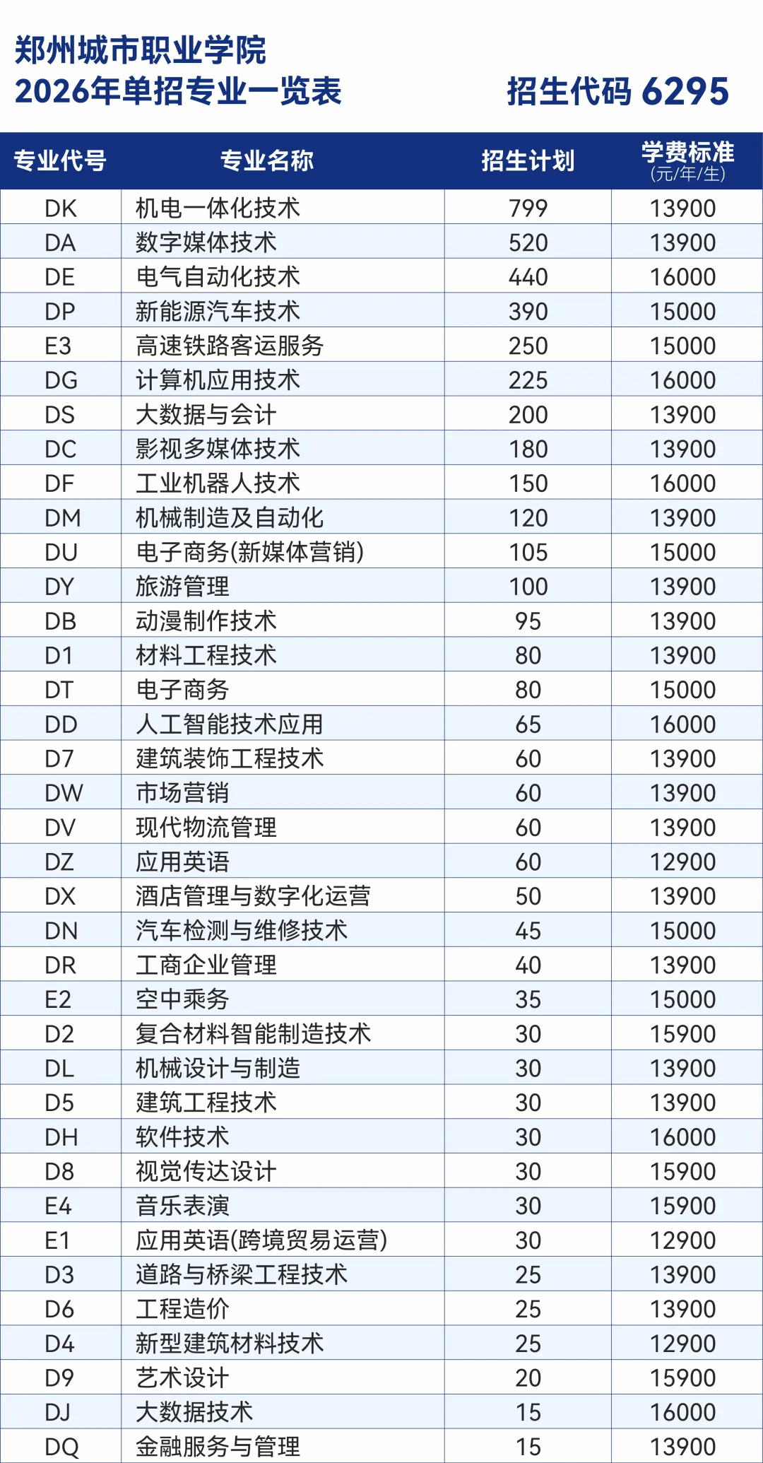 【权威发布】郑州城市职业学院2026年单招志愿填报指南!(内附专业代号)