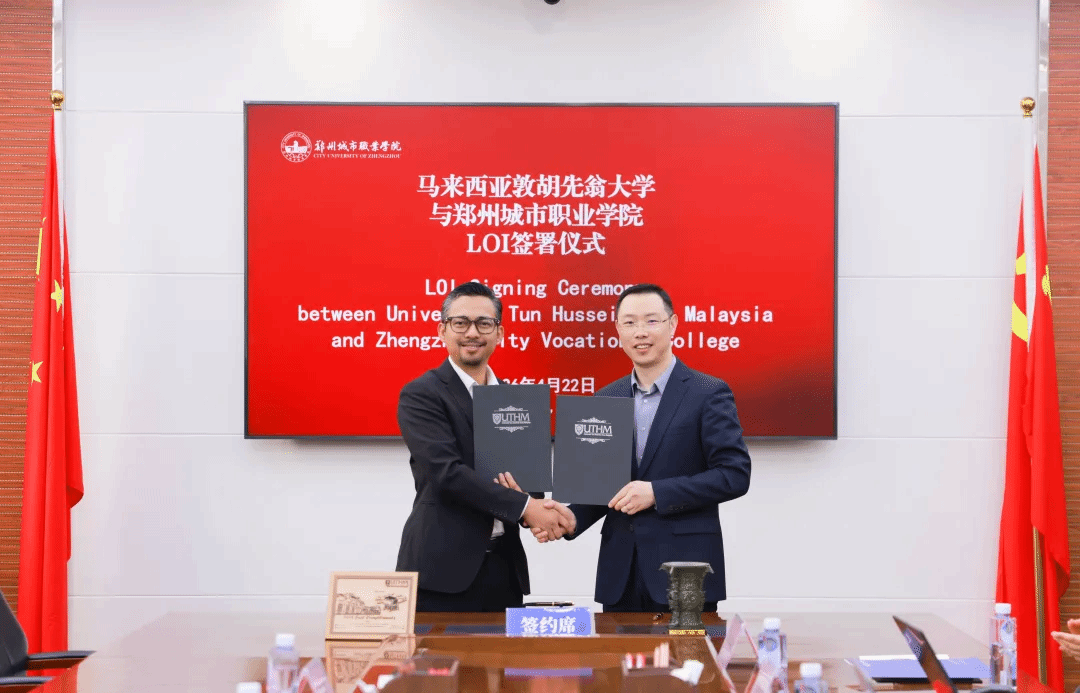 4月22日,马来西亚敦胡先翁大学(Universiti Tun Hussein Onn Malaysia)代表团一行莅临郑州城市职业学院访问交流。马来代表团与学校围绕学生交换、教师互访、联合科研、课程共建等领域交流洽谈、凝聚共识,并成功签署合作意向书(LOI),正式建立友好的战略合作关系,为中马教育文化交流搭建起坚实桥梁。