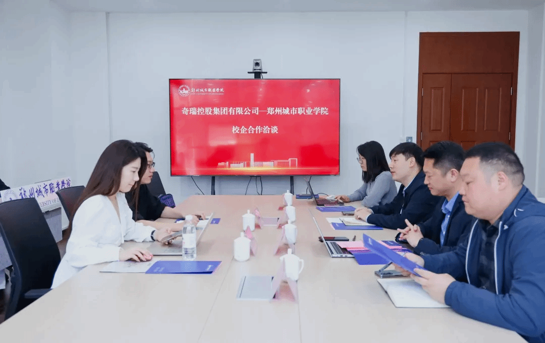 为深入贯彻落实产教融合、协同育人国家战略,精准对接汽车产业高质量发展人才需求,近日,郑州城市职业学院与奇瑞控股集团有限公司举行校企合作洽谈会。奇瑞控股集团有限公司招聘经理朱杰宁一行,郑州城市职业学院副校长段龙飞及相关部门负责人出席会议,双方围绕订单班建设、人才联合培养、校企资源共享等议题展开深度磋商,达成系列合作共识。