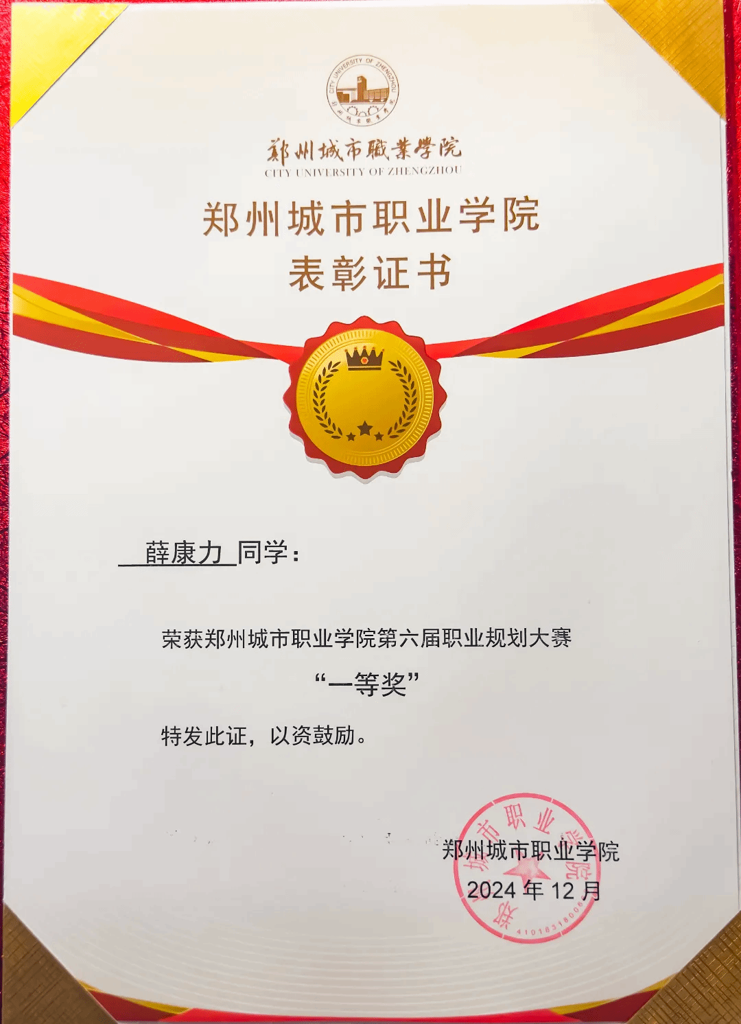 近日,第三届全国大学生职业规划大赛全国总决赛在天津圆满落幕。郑州城市职业学院2023级电子商务(新媒体营销)专业学生薛康力,凭借“守艺焕新——让非遗‘活’在指尖,让文化‘火’在云端”项目斩获国家级金奖,学校获高校优秀组织奖。