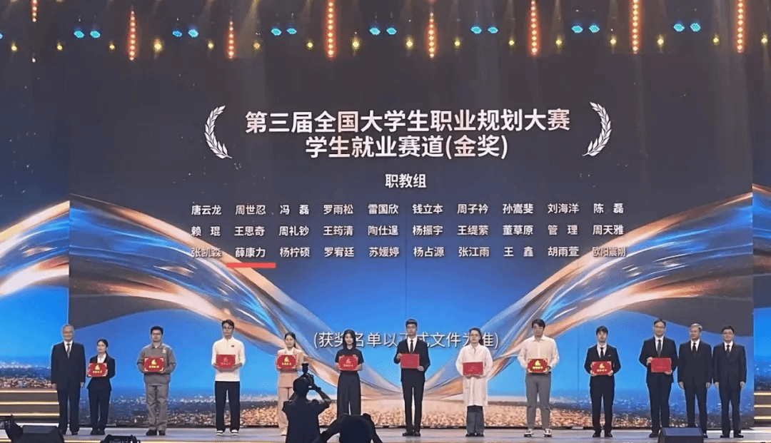 4月23日,薛康力再次站上全国大学生职业规划大赛的最高赛场。他复盘去年参赛经验,在学校指导老师团队的悉心指导下,对项目定位、生涯报告、现场展示进行反复打磨、精益求精。赛场之上,他以详实的生涯发展报告、沉稳从容的现场表达,传递着深耕舞狮非遗宣传的坚定信念与清晰职业目标,用青春担当打动了现场每一位评委,最终在激烈角逐中脱颖而出,成功斩获国家级金奖。