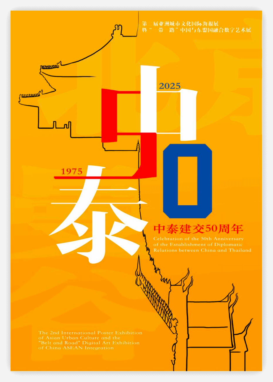 本届展览以“数字为桥、艺术为语”为核心理念,聚焦三大主题:中国与东盟国家在城市文化、旅游与设计领域的交融互鉴;“一带一路”背景下的文化交流与合作;以及庆祝中泰建交50周年。自2025年5月26日启动征稿以来,共收到来自中国(含澳门)、马来西亚、泰国、越南、伊朗、俄罗斯等十余个国家与地区的3190件作品。经多国专家评审团严格遴选,最终180件优秀作品入展,涵盖平面海报、AI生成艺术、动态插画、交互装置等多种媒介形式。这些作品既植根于水墨意境、民俗图腾、非遗技艺等传统文化基因,又融合算法逻辑与数字美学的前沿探索,生动诠释了“民心相通”的时代内涵。