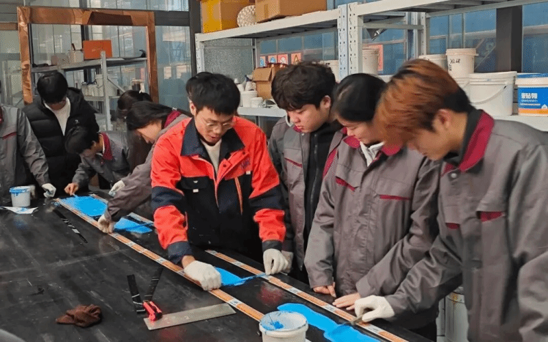 实操技能强化:企业一线技术人员“手把手”教学,带领学生系统学习防水材料的原材料检验、产品配方设计、产品检验检测等核心技能,将校园所学理论知识转化为可落地的动手能力;